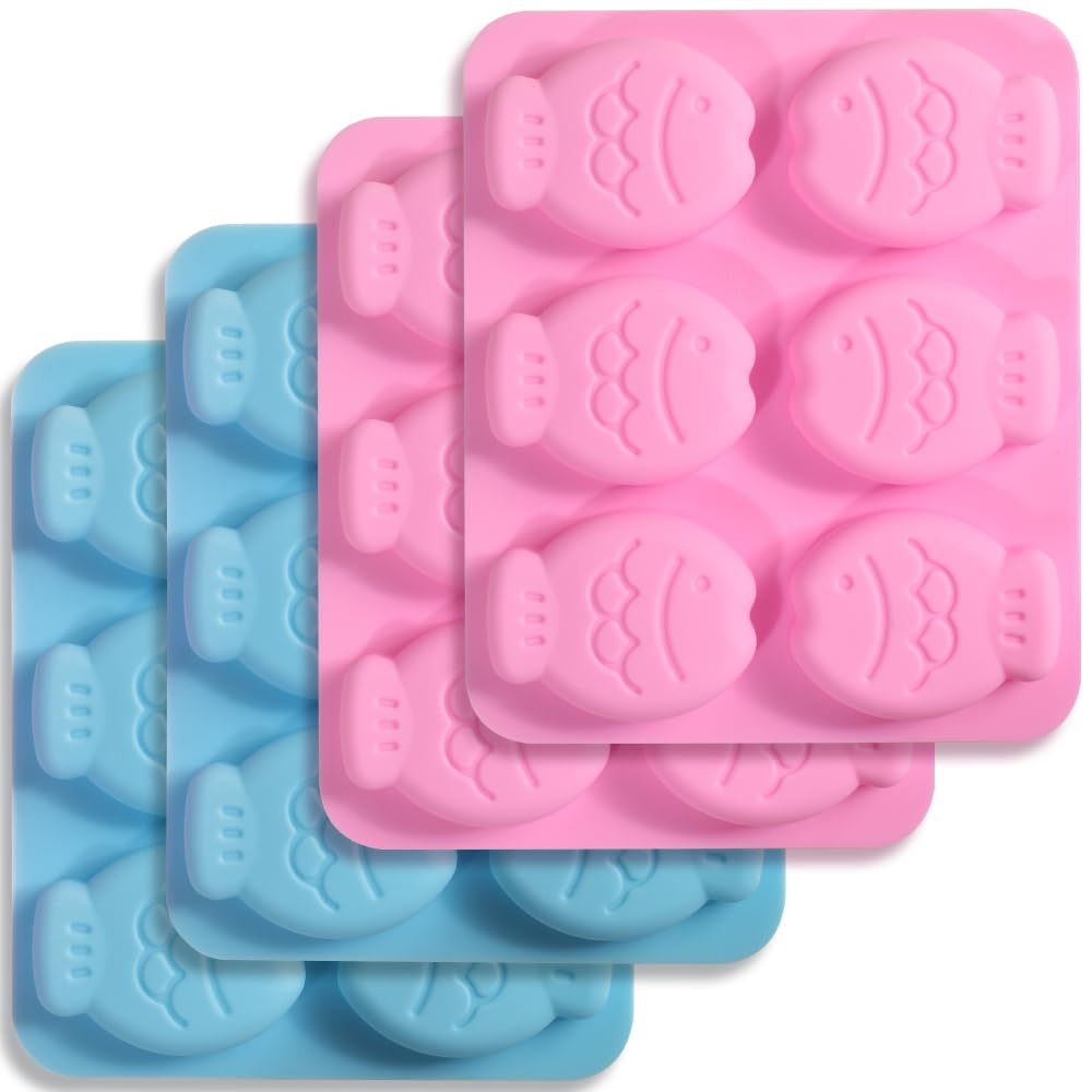 Newk Fish-Shaped Silicone Molds for Cookies, Chocolates, Candy, and Ice Cubes – Cute Design, 2 Blue and 2 Pink, Perfect for DIY Ba