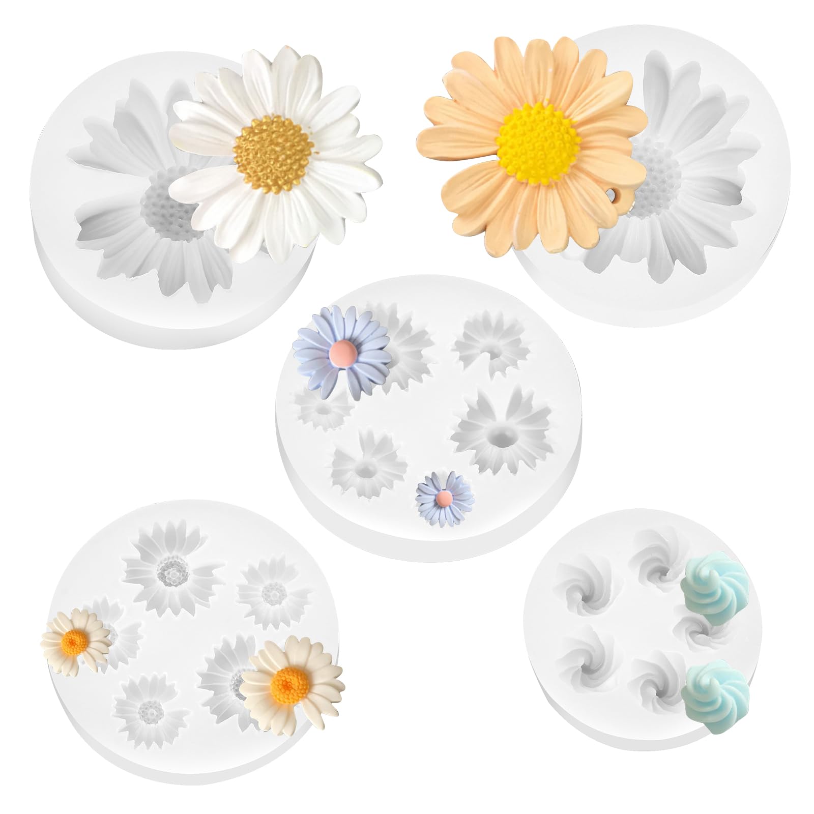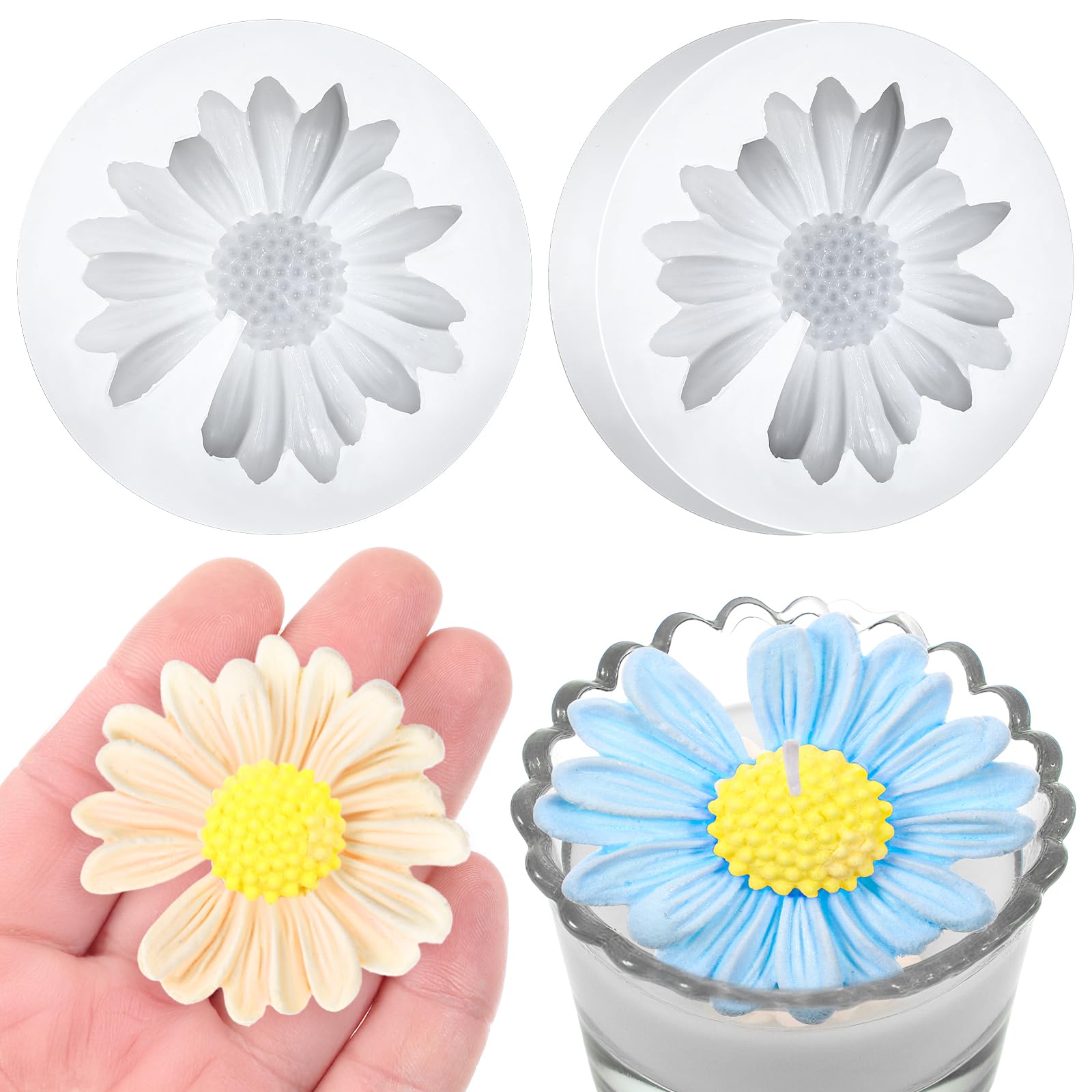 2 PCS Daisy Flower Silicone Mold, 3D Flower Candle Molds Flowers Chocolate Molds Daisy Fondant Mold for Cake Cupcake Topper Decora