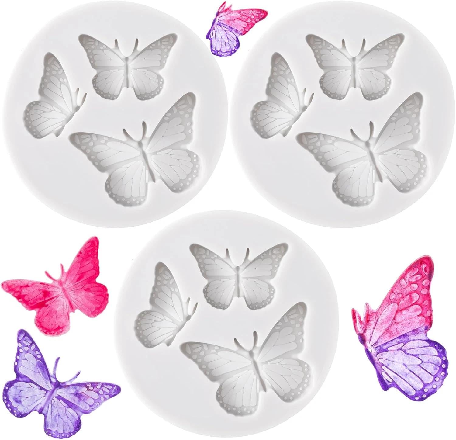 3 Pcs White Mini Butterfly Molds Silicone, Flutter Butterfly Molds for Chocolate Cake Candy Desserts Baking Cupcake Soap Ice Decor