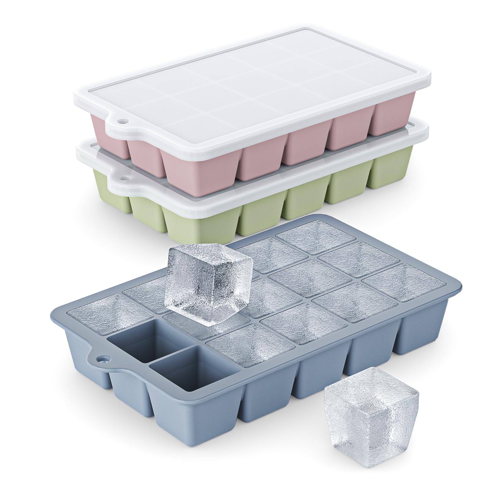 Bandeja de silicona para cubitos de hielo, paquete de 3, bandeja de cubitos de hielo de fácil liberación con tapa, bandejas de cub