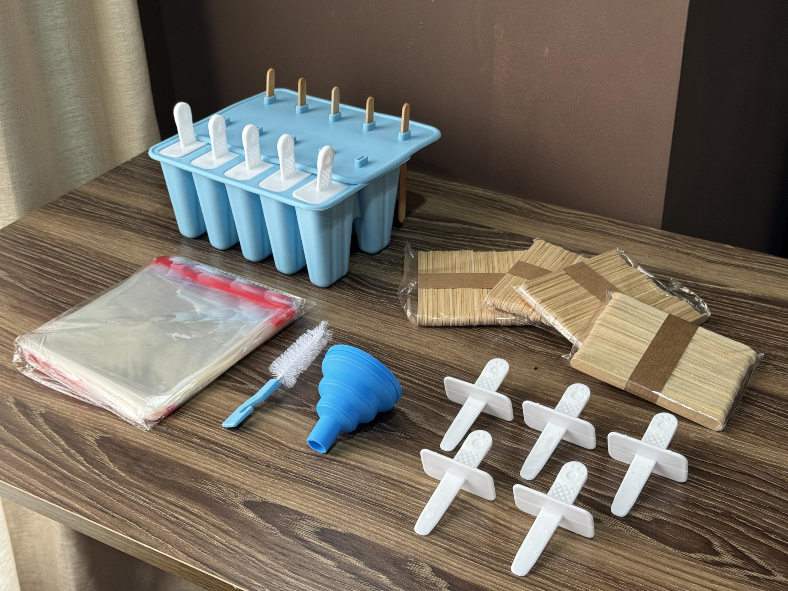 Popsicle Mold with 200 Sticks, 200 Bags, 10 Reusable Sticks, 10-Count Silicone Ice Pop Maker, Easy-Release Homemade Ice Cream Mold