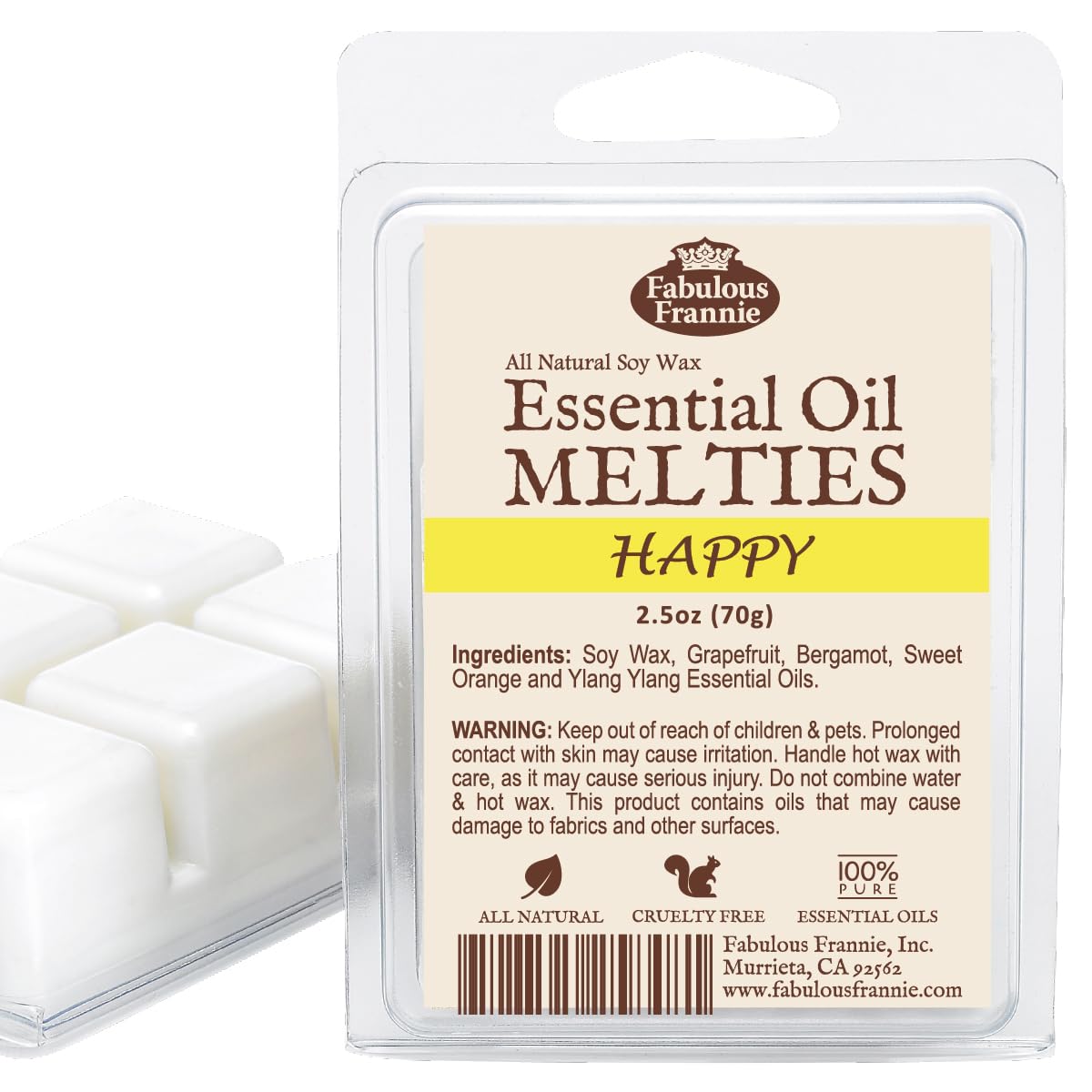 Fabulous Frannie Happy Pure & Natural – Vela de soja para derretir / tarta / derrite hecha con aceites esenciales de bergamota pur