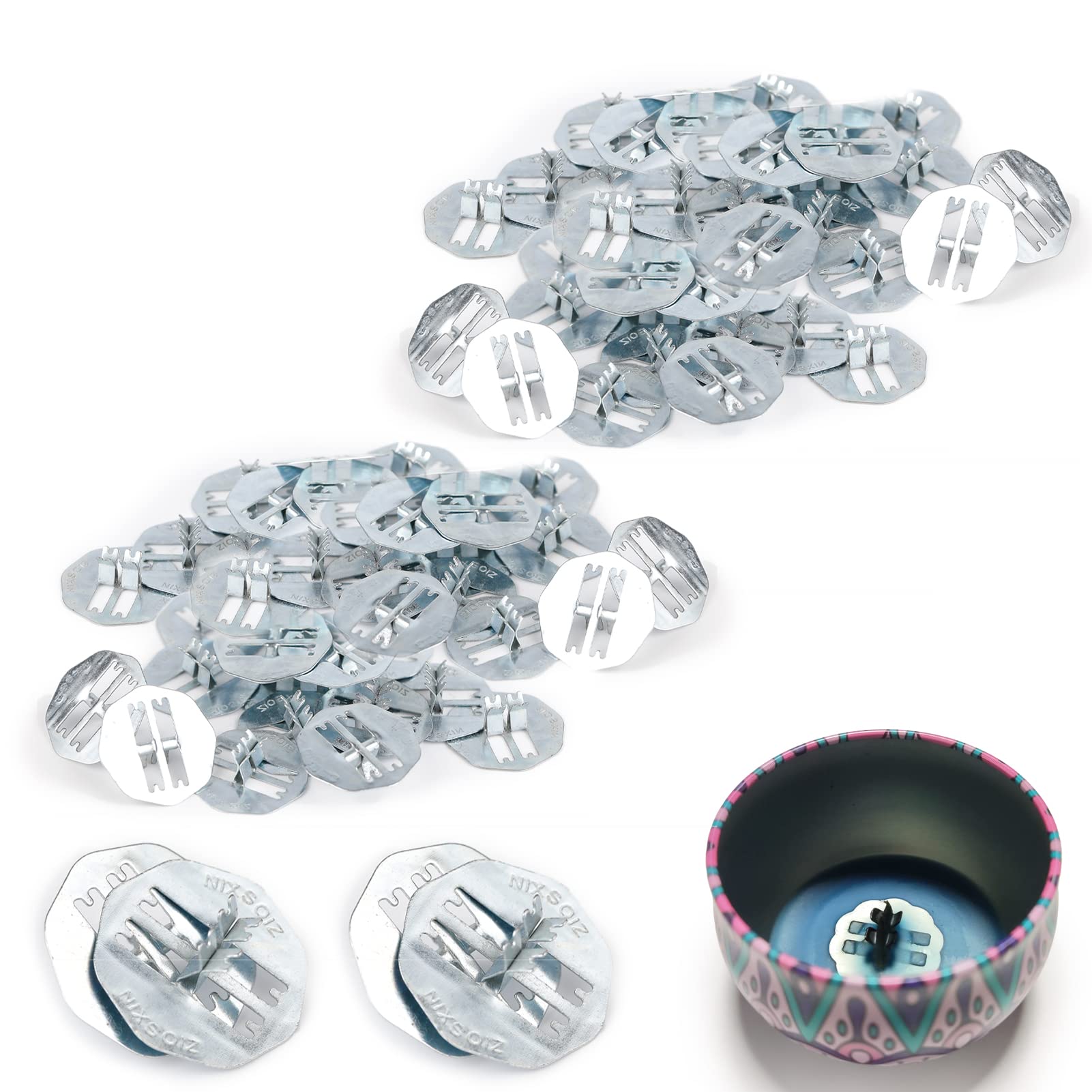 Ziosxin Paquete de 130 bases de metal galvanizado adecuadas para la fabricación de velas de madera, tamaño del soporte de metal: a
