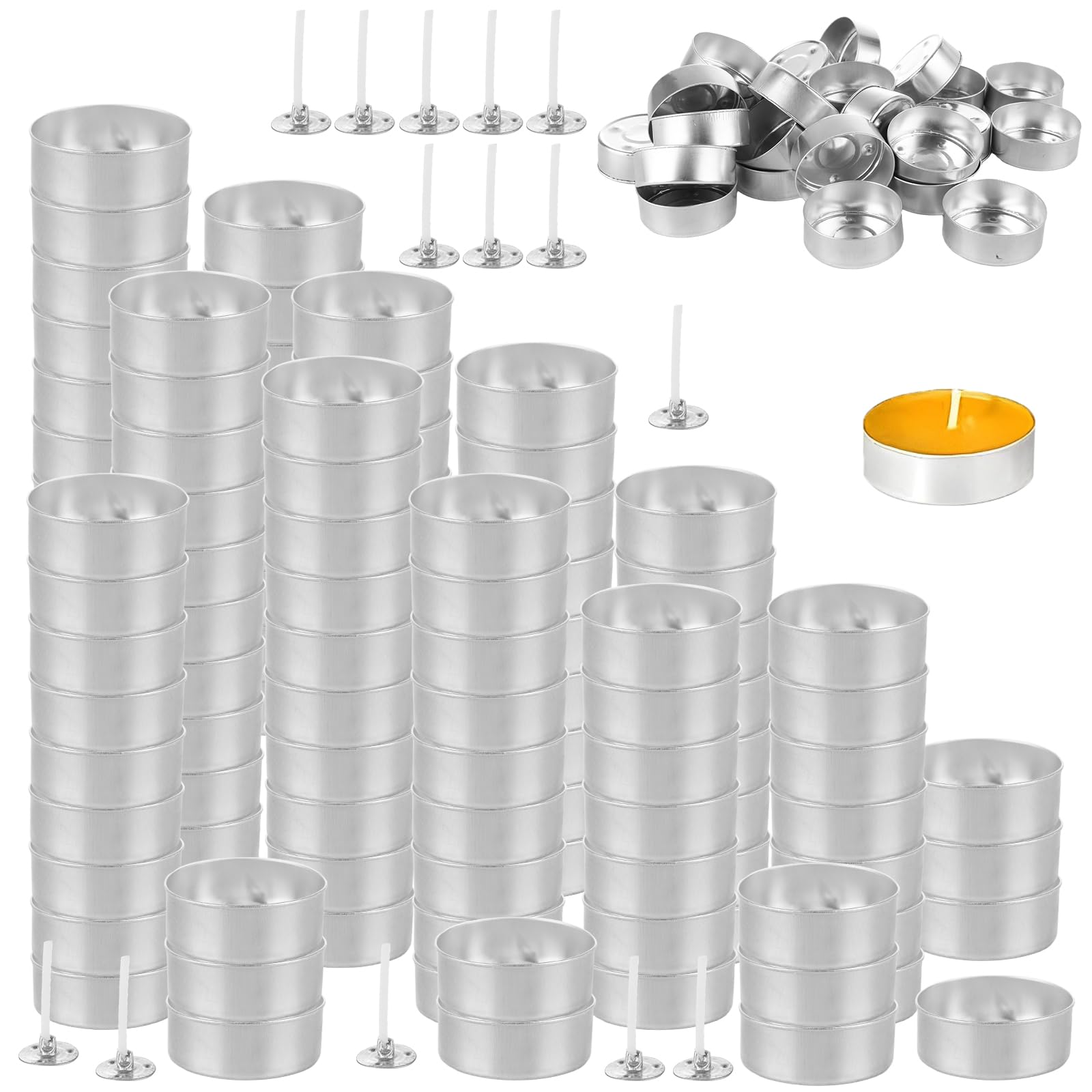 200 tazas de aluminio para velas de té con 200 mechas de velas, recipientes vacíos para hacer velas de té, recipientes redondos de