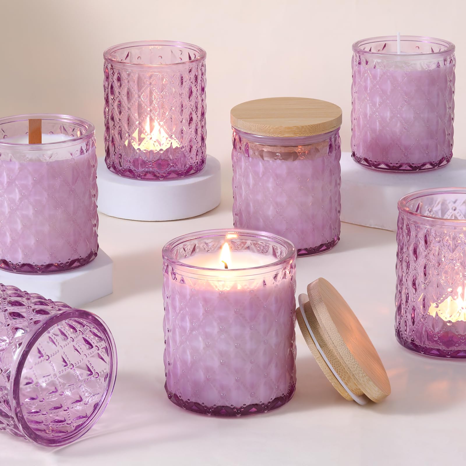 MATAHUM Paquete de 8 tarros de velas moradas para hacer velas, tarros vacíos de vidrio de 7 onzas con tapas de bambú para suminist