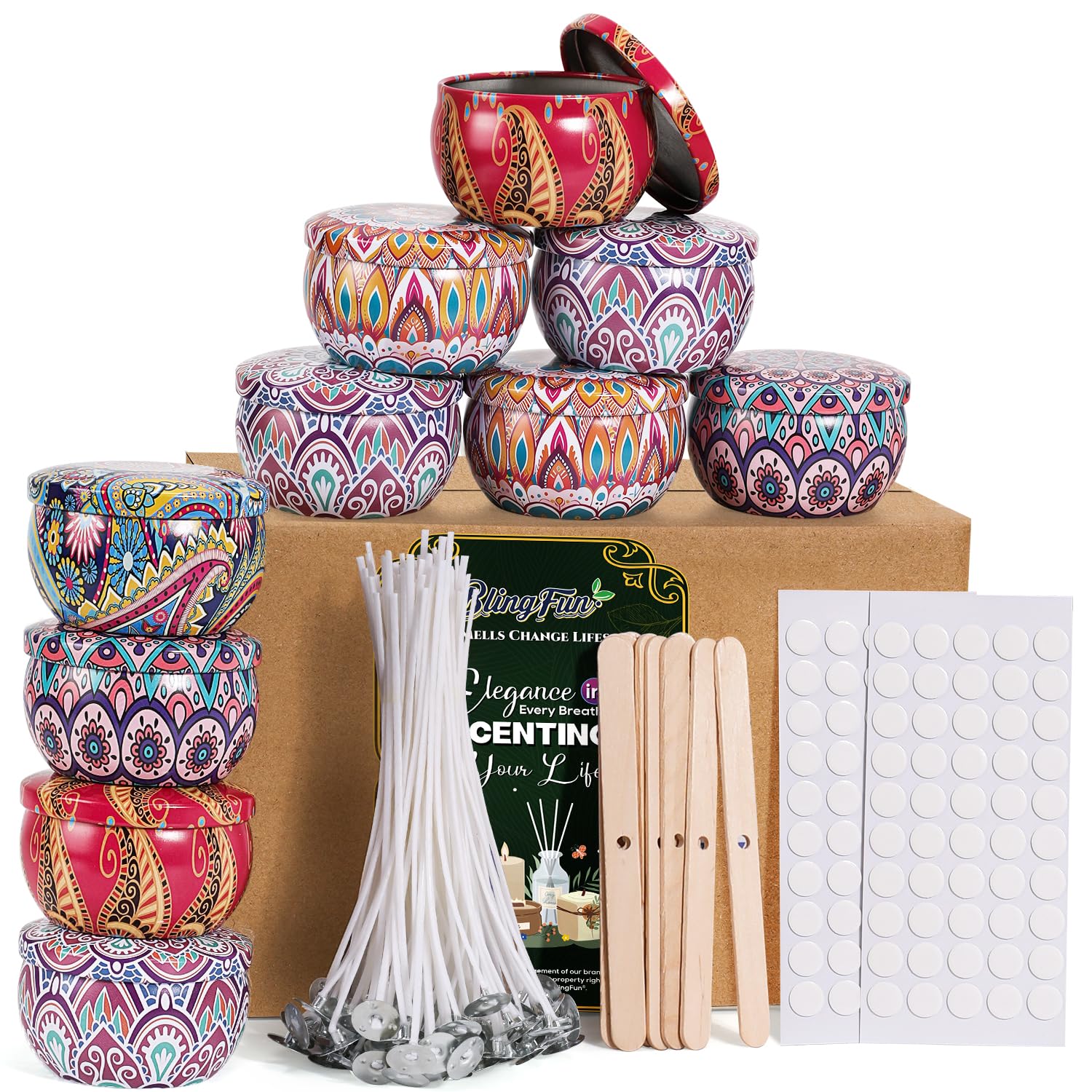Blingfun Paquete de 10 latas de velas de 4 onzas, latas para hacer velas, frascos de velas, 100 mechas para velas, 100 calcomanías