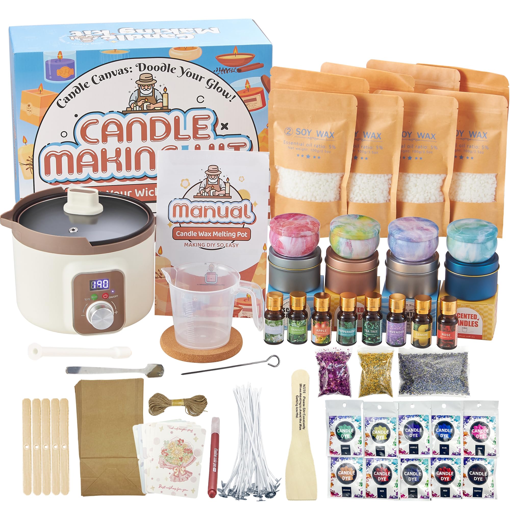 LFISGNN Kit completo de fabricación de velas profesional con difusor inteligente de cera con pantalla de ℉/℃, juego completo de su
