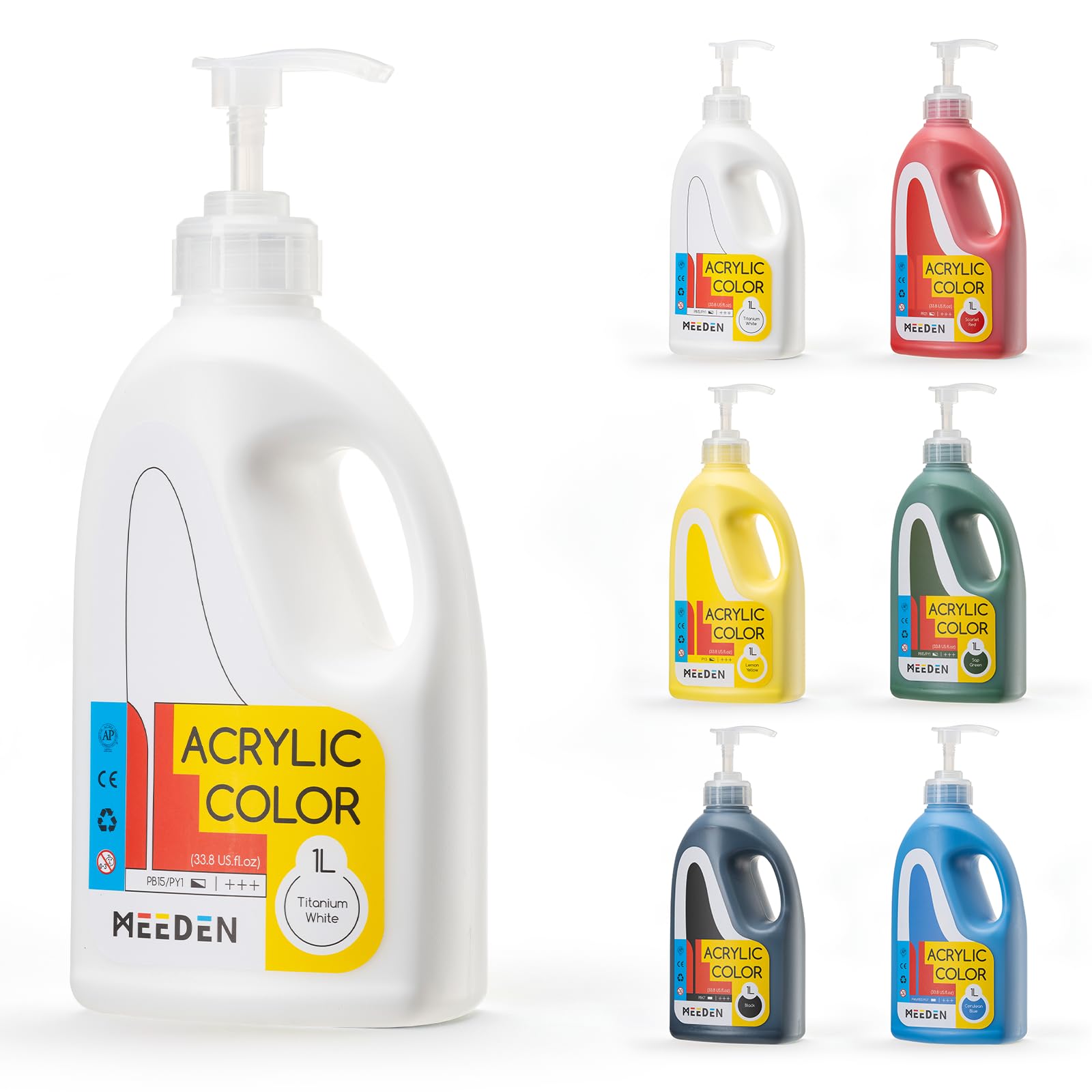 MEEDEN Juego de pintura acrílica a granel: 6 colores básicos 1 l/33.8 oz pintura acrílica grande con tapa de bomba, pinturas de ar