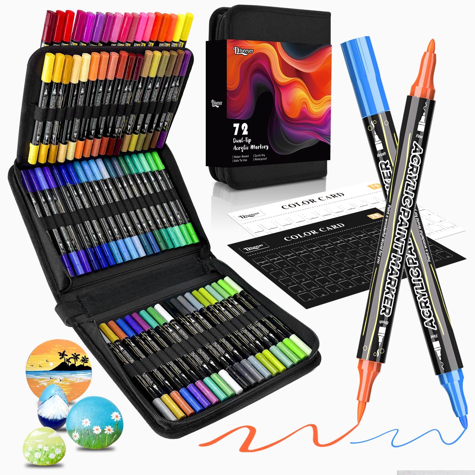 Bolígrafos de pintura acrílica de 72 colores, marcadores de pintura acrílica de doble punta con punta de pincel y punta fina, marc