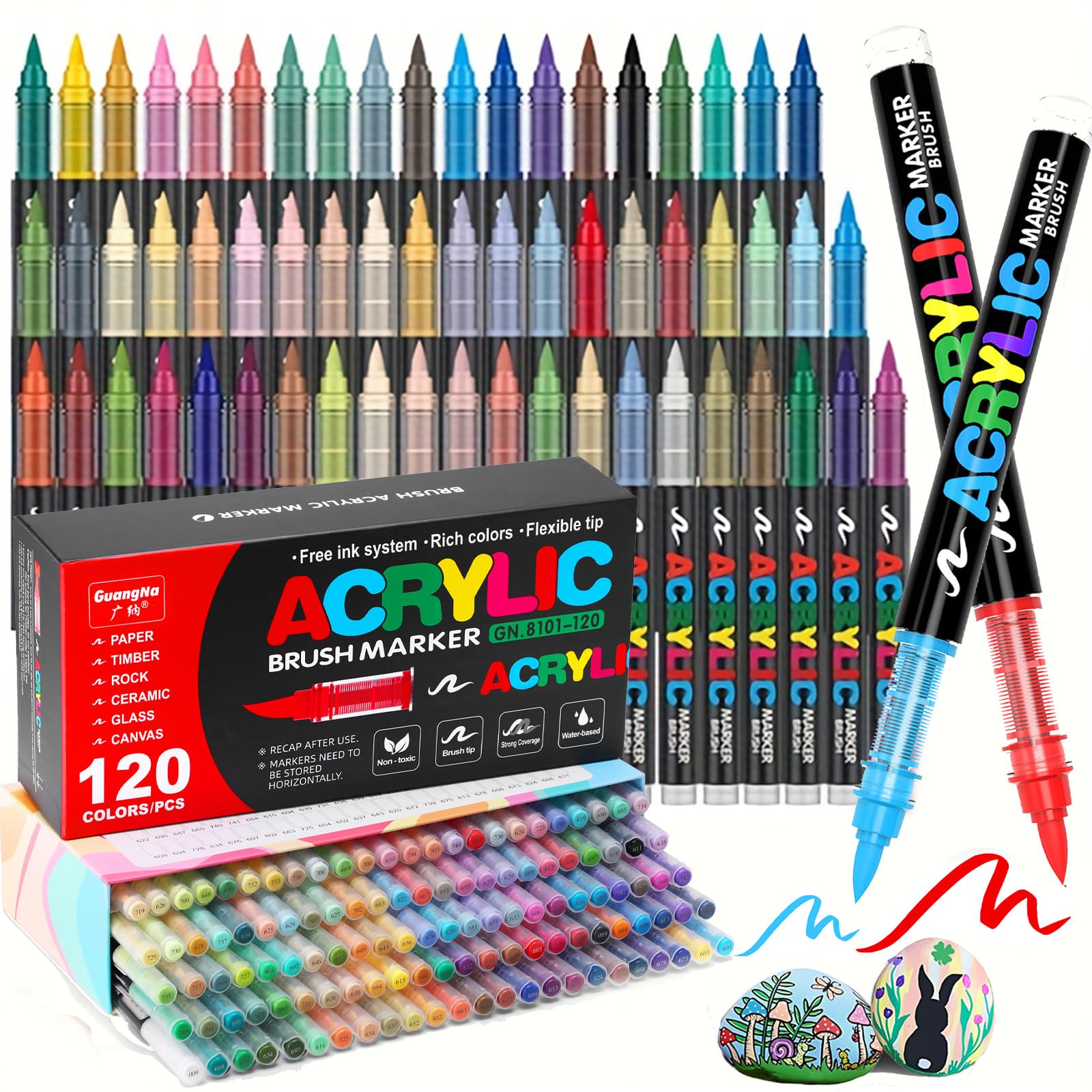 Marcadores de pintura acrílica de 120 colores, punta de pincel suave para piedra, madera, vidrio, pintura en roca, lienzo, cerámic