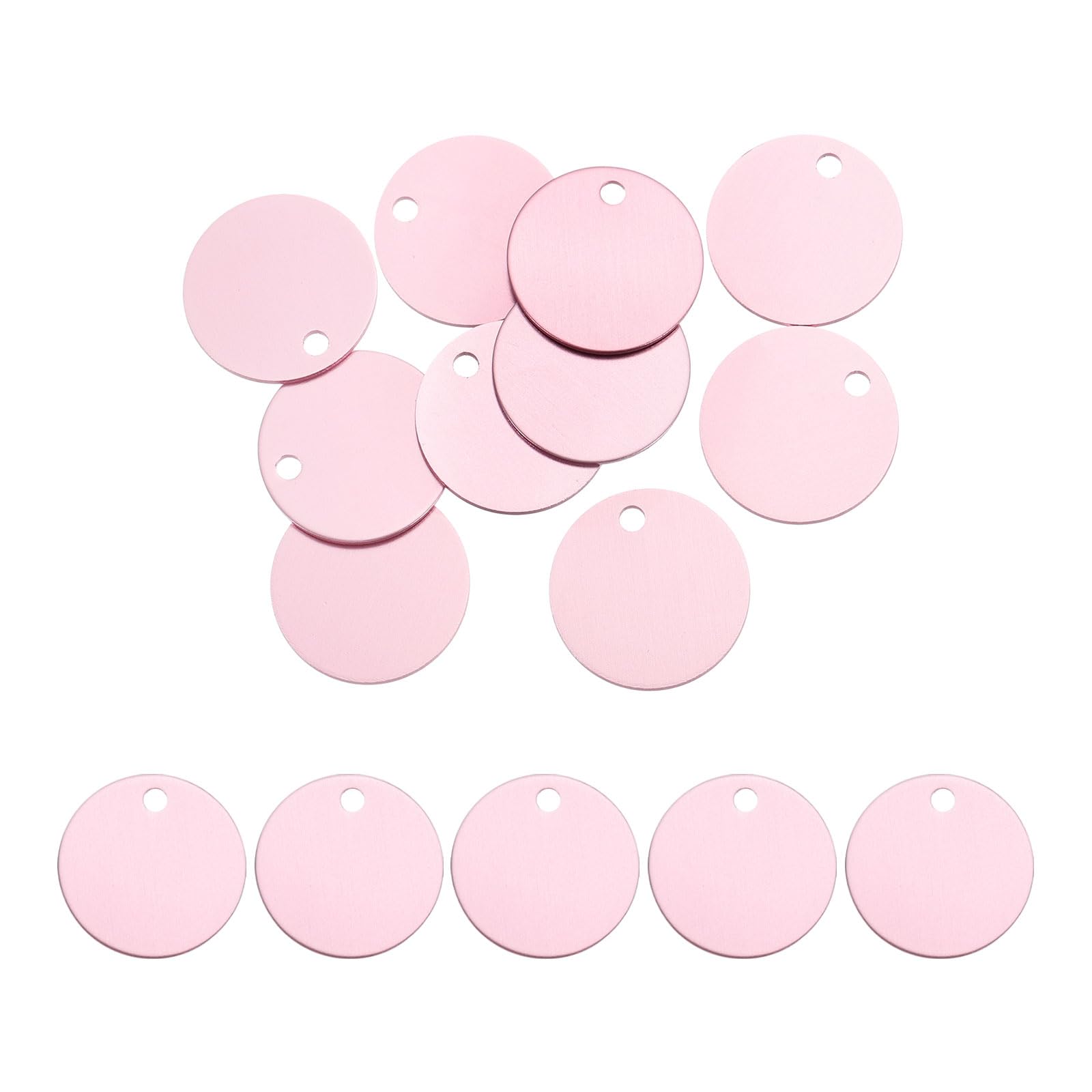 MECCANIXITY Etiquetas de estampado de metal, 1 pulgada, redondas, de aluminio, color rosa, para collares, pulseras, perros, mascot