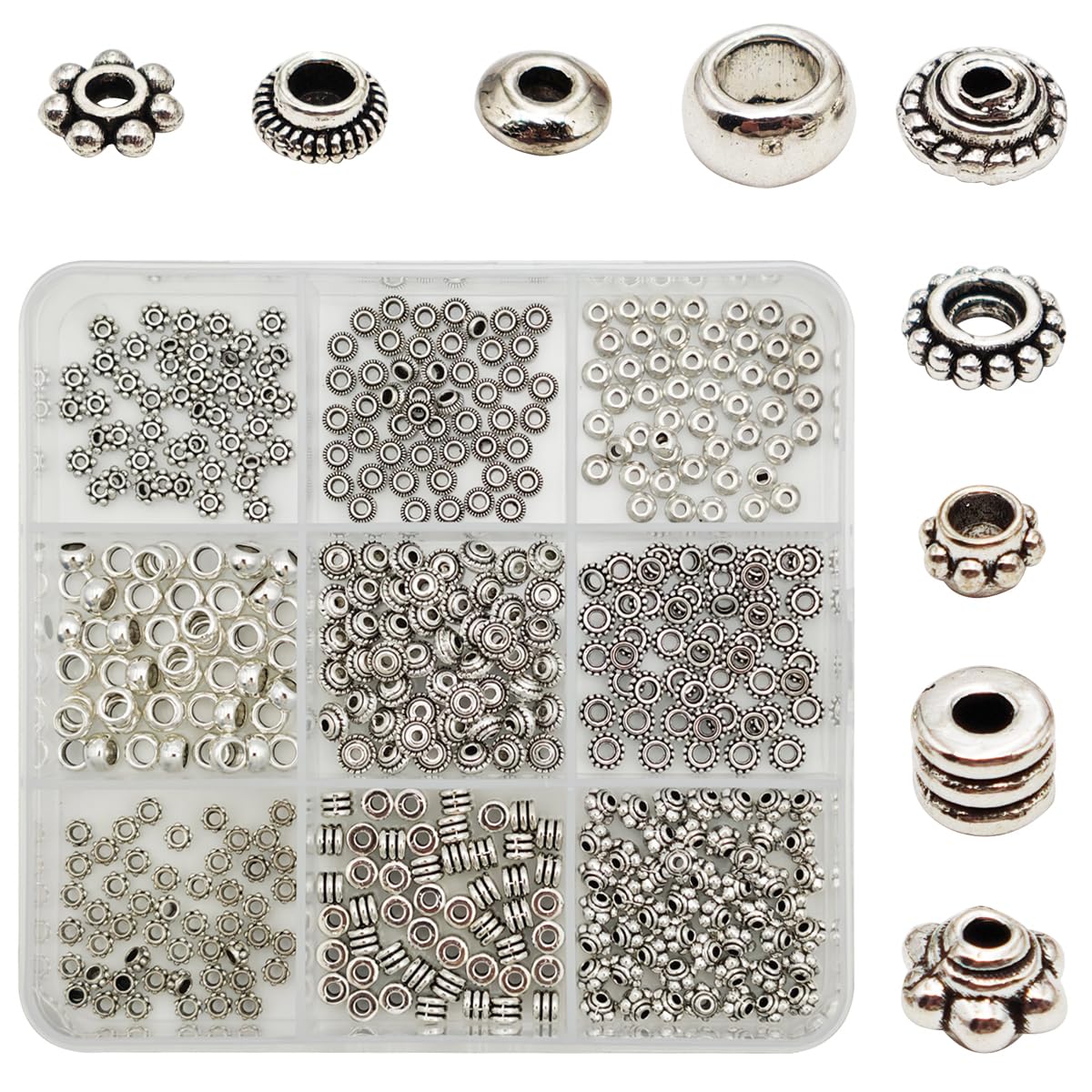 450 cuentas espaciadoras de plata antigua de 0.157 a 0.197 pulgadas de aleación de metal Heishi Flat Rondelle cuentas sueltas para