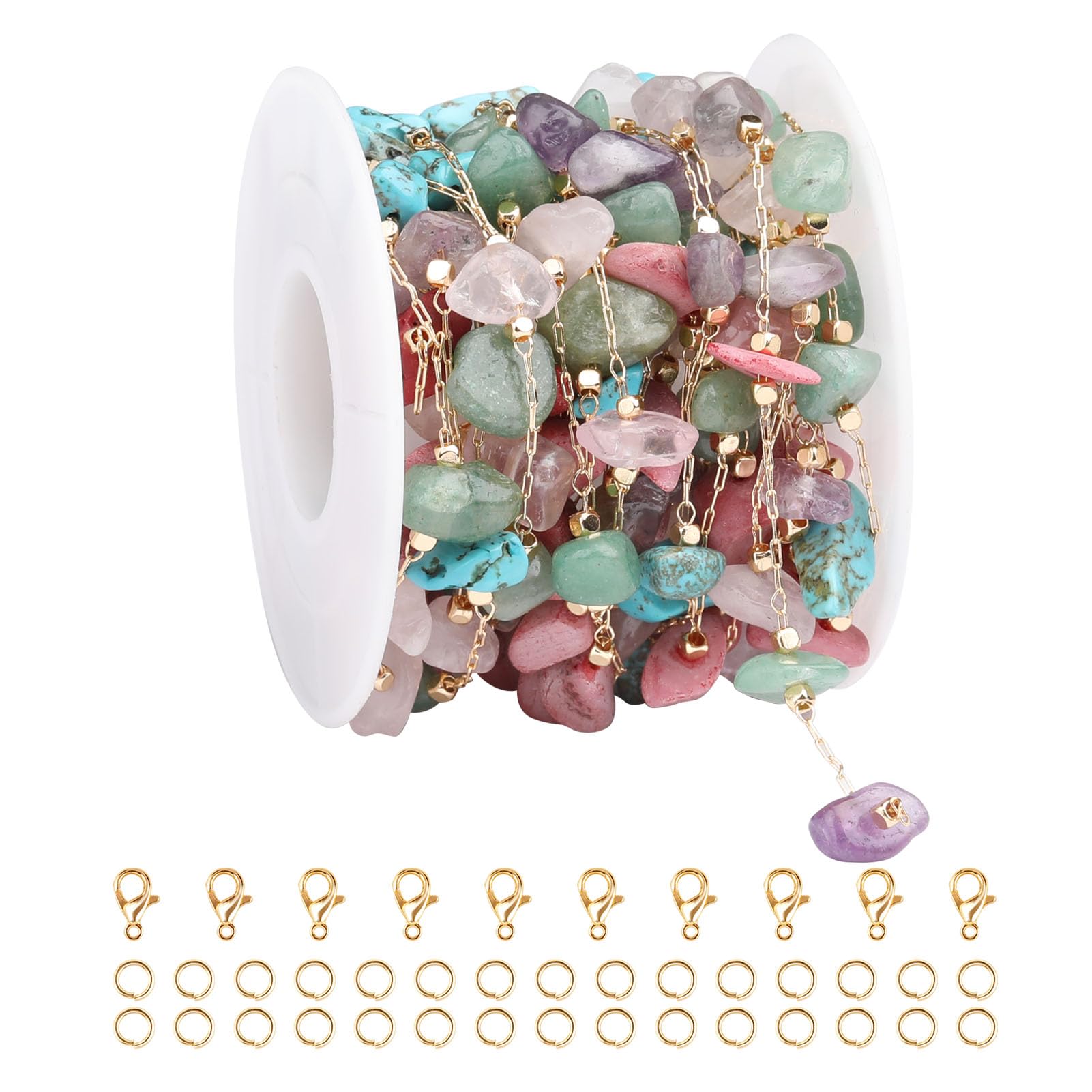 KYUNHOO Cadena de eslabones de piedra natural colorida de 16.4 pies, cadena de latón chapada en oro para collar, cadena de clip fi