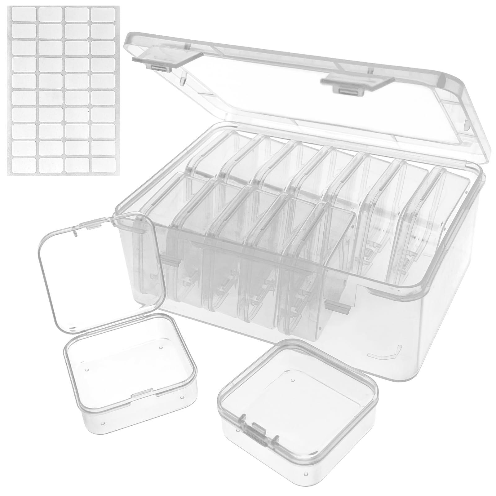 Organizadores y almacenamiento de cuentas: caja organizadora de cuentas transparentes de 15 piezas con tapas con bisagras para fab