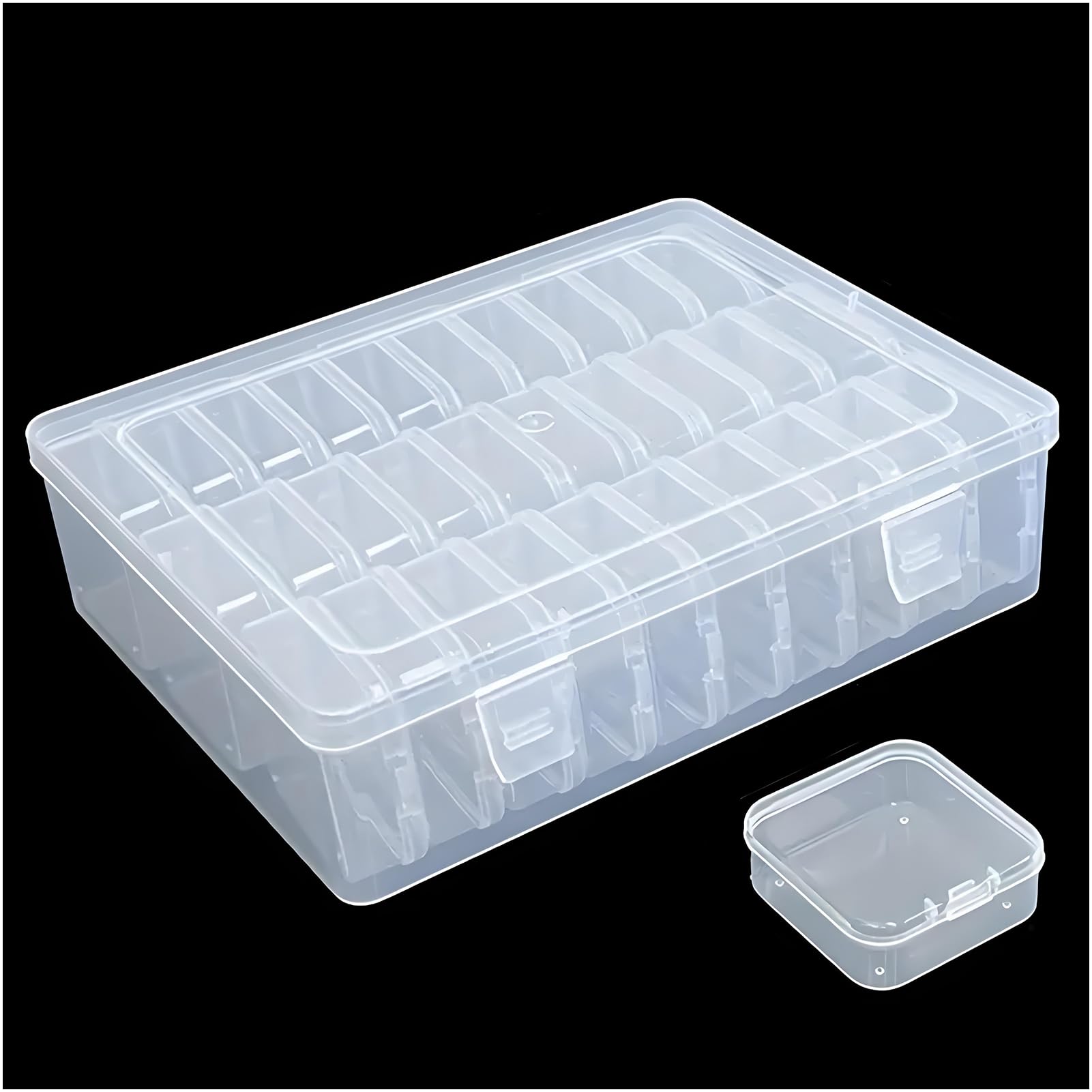 Cosics Organizadores y almacenamiento de cuentas, caja de plástico transparente para manualidades con tapa con bisagras, 16 mini c