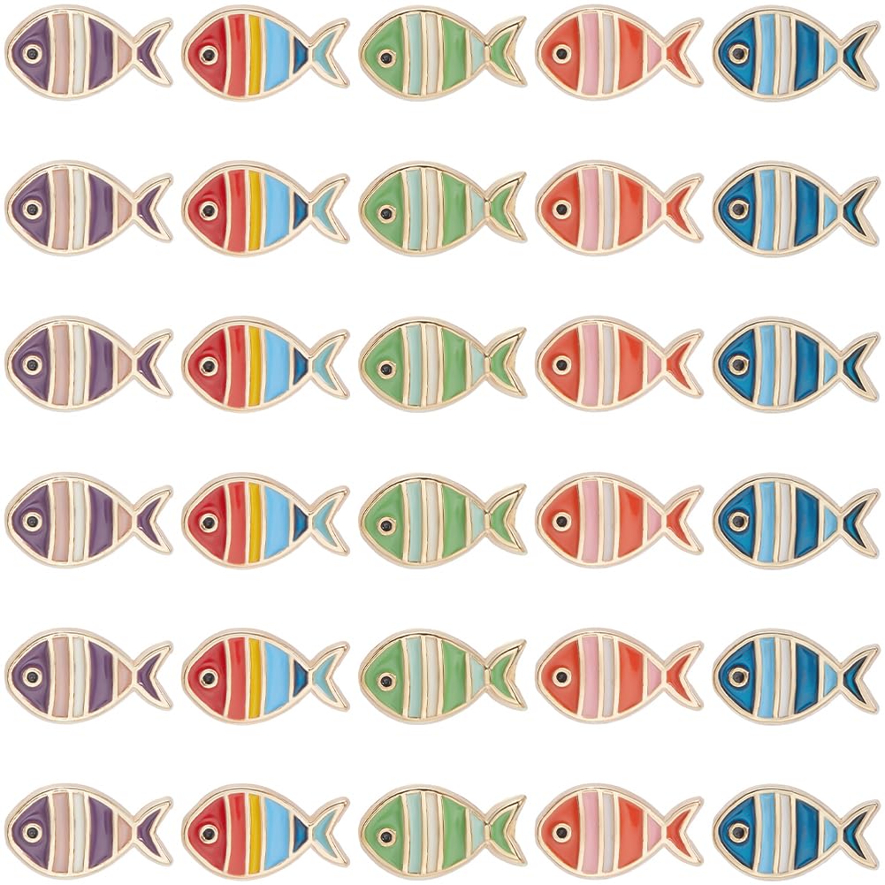 SUNNYCLUE 1 caja de 30 cuentas de pescado esmaltado de 5 colores, cuentas de animales del océano, aleación a granel, mar, marino,