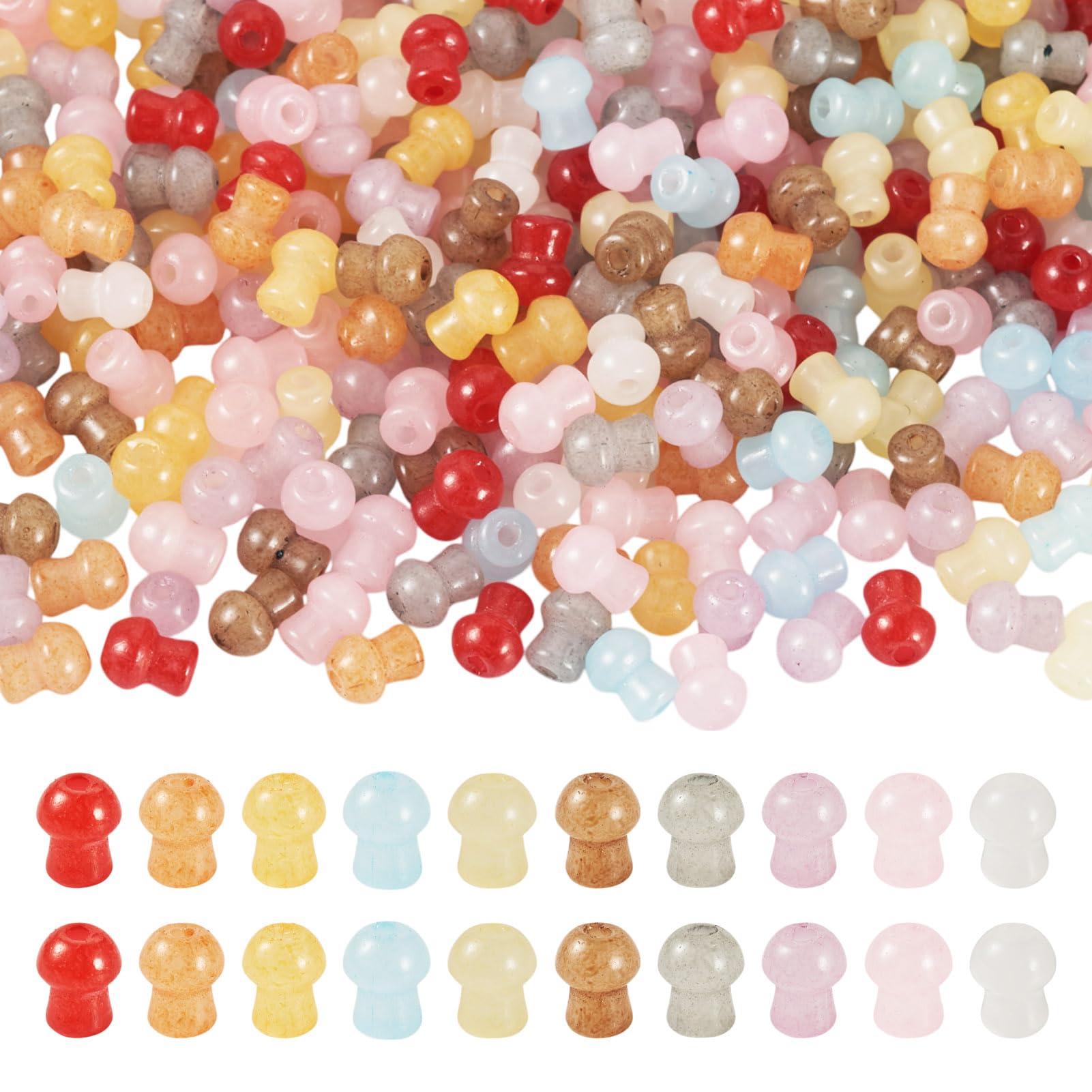 Cheriswelry 500 cuentas de hongo, mini cuentas de semillas de vidrio, bonitas cuentas espaciadoras sueltas de vidrio de hongos de