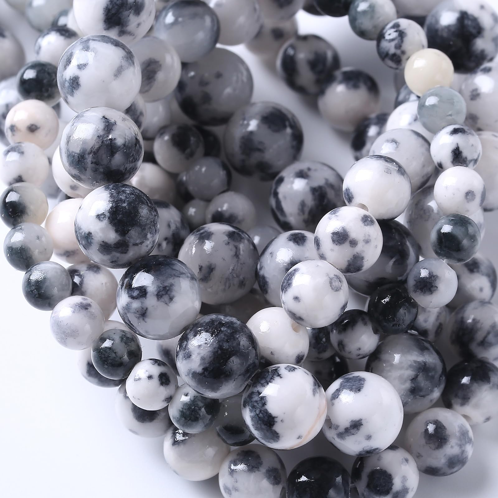 38 cuentas sueltas de jade persa blanco y negro de 0.394 in para hacer joyas, pulseras y collares