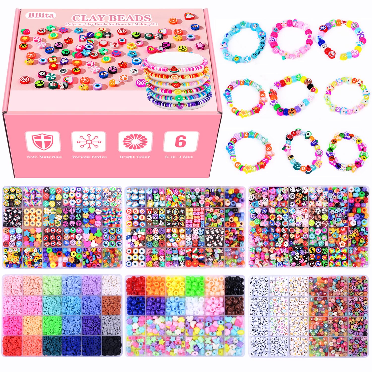 BBita – Juego de regalo de Navidad, 10000 cuentas de arcilla polimérica p/pulseras, frutas, flores, animales, pasteles, mariposas,