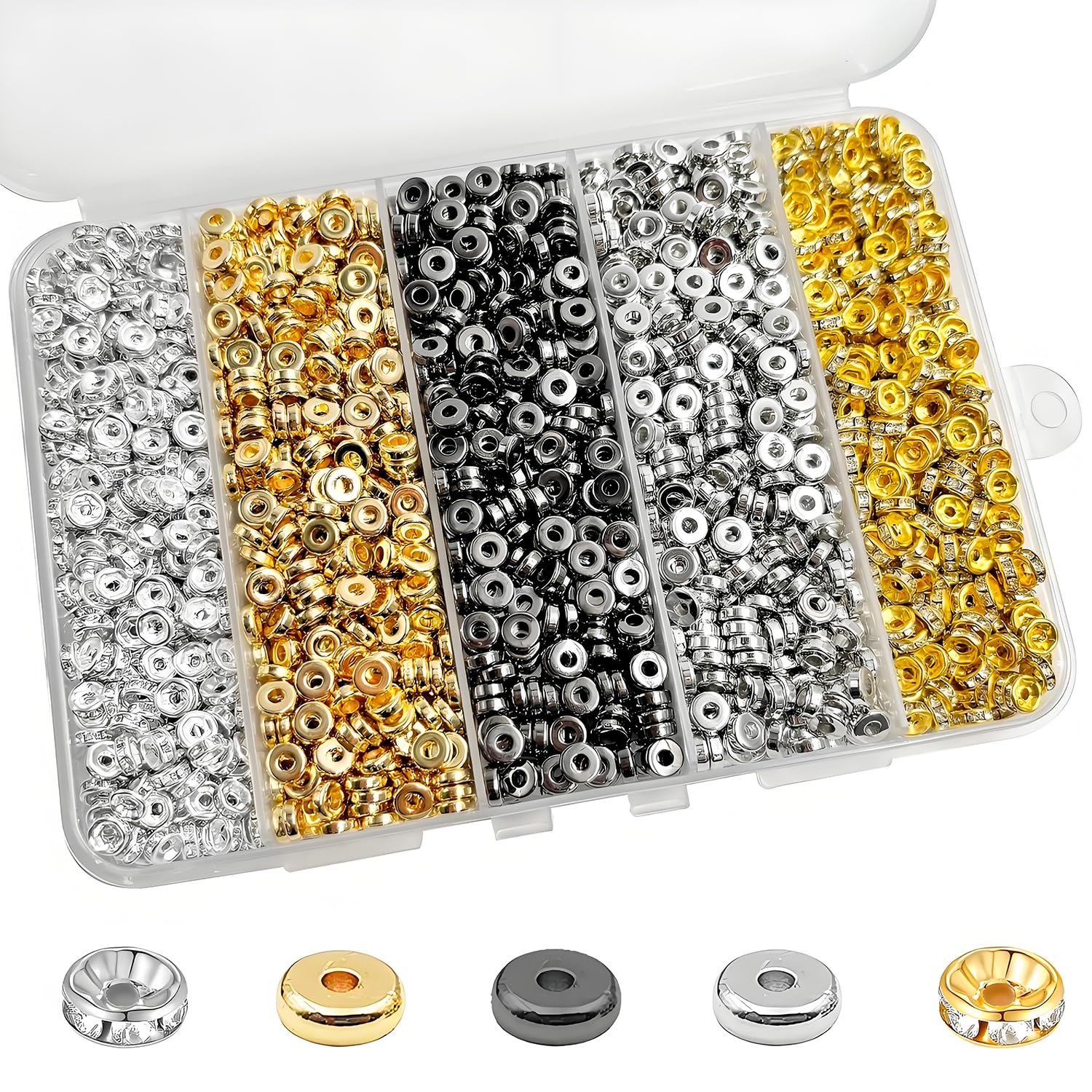 Cuentas espaciadoras redondas planas de 0.236 pulgadas, cuentas de arcilla para hacer pulseras, cuentas espaciadoras de disco plan