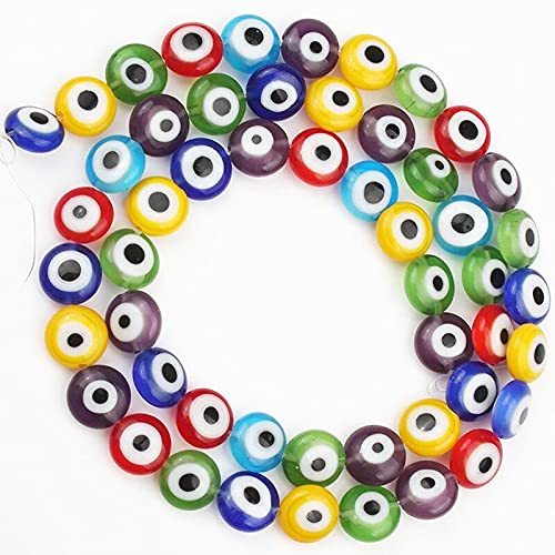 NBEADS 360 cuentas de vidrio contra el mal de ojo, 4 colores hechas a mano, cuentas planas redondas de vidrio contra el mal de ojo
