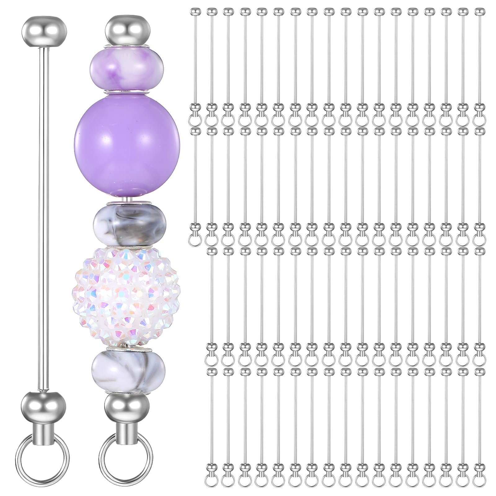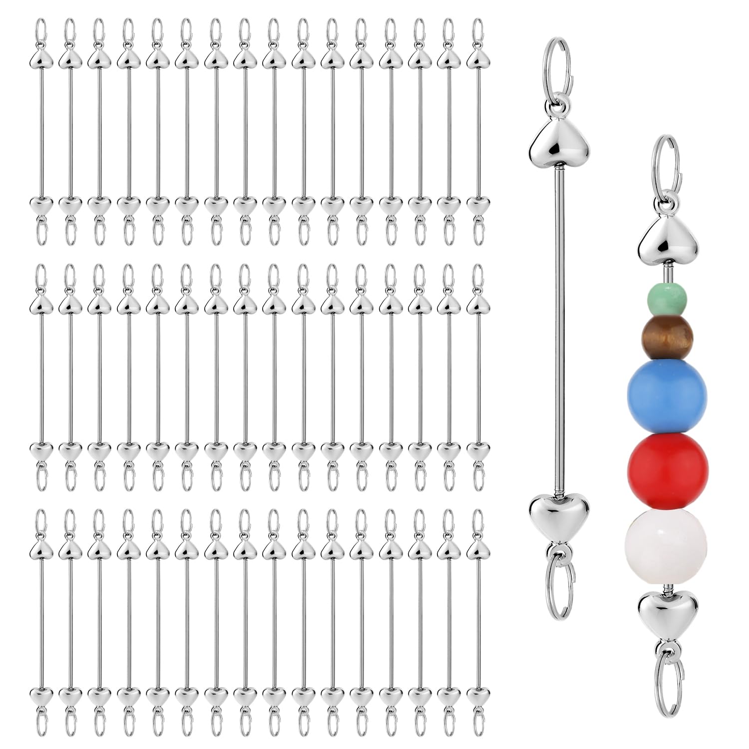 70 Pcs Blank Beadable Keychain Bars Metal Silver DIY Focal Bead Keychain Bar Charms Blank Jewelry Making Accessories Pendant Makin