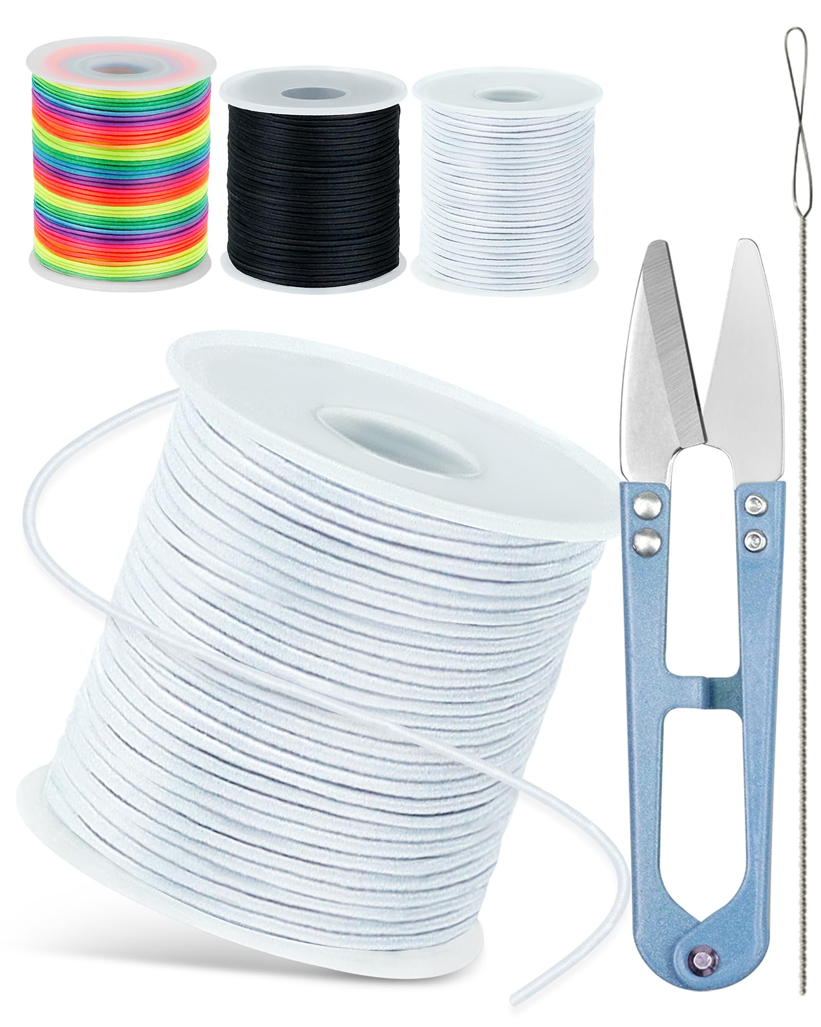 FIVEIZERO – 3 rollos de cordón elástico colorido color blanco y negro, 0.049 pulgadas, 0.059 pulgadas, 0.059 pulgadas, cuerda elás