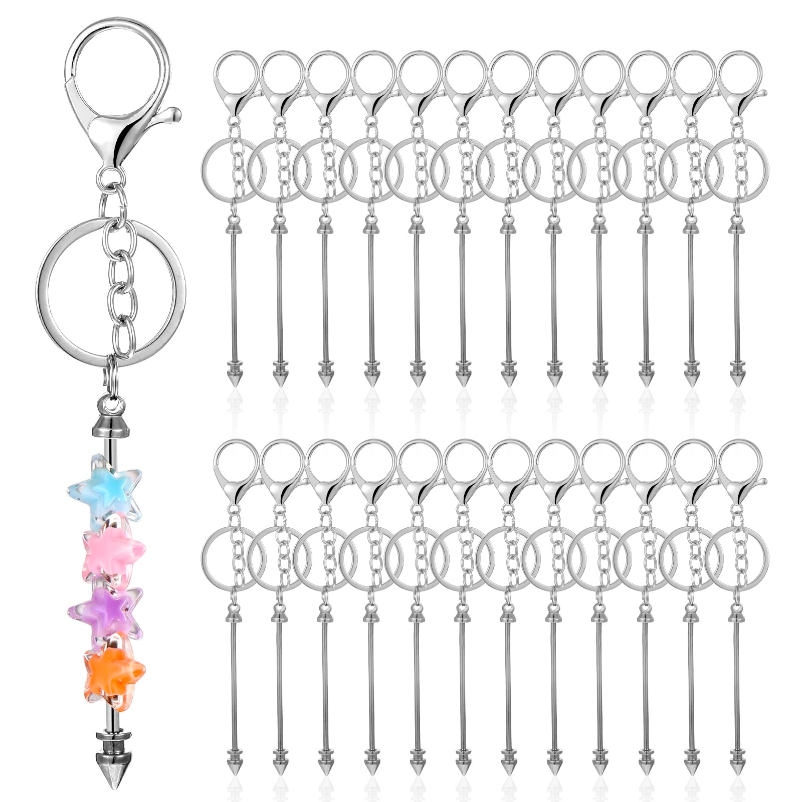 26 llaveros con cuentas, a granel, llavero de metal con cuentas en blanco, creativo, lindos, barra de llavero de cuentas plateadas