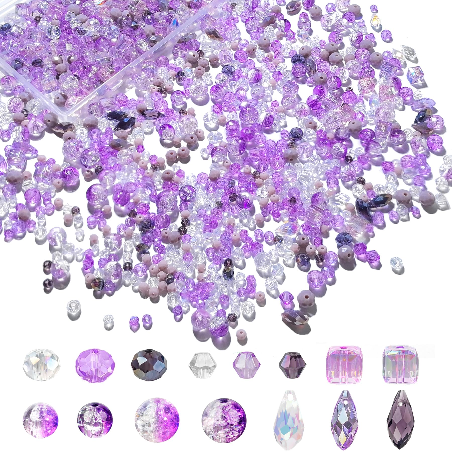 1000 cuentas de vidrio para hacer joyas, coloridas cuentas de cristal de arcoíris con cuentas sueltas brillantes para manualidades