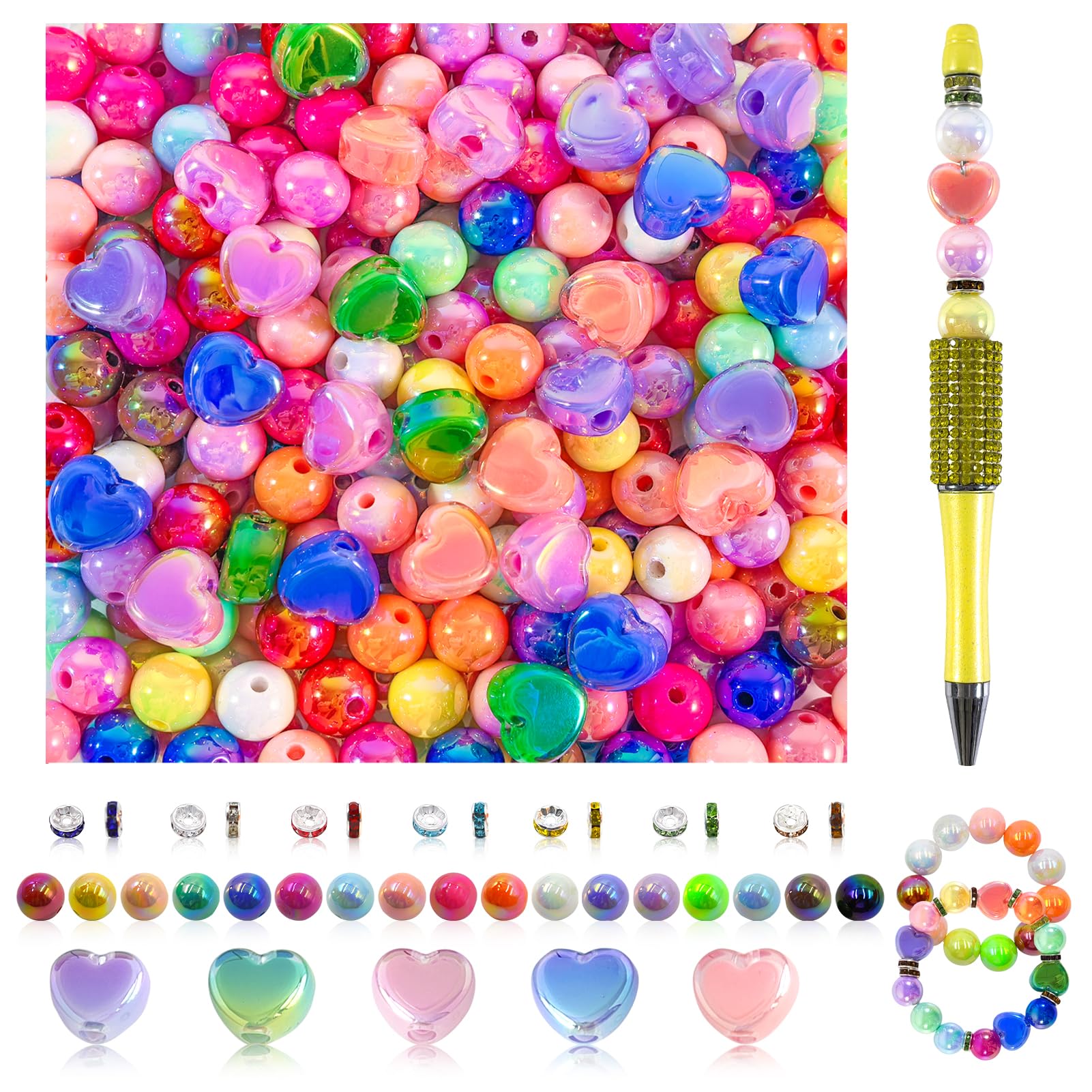 320 cuentas para bolígrafos, juego de cuentas sueltas de acrílico de 0.63 pulgadas a granel, kit de cuentas para manualidades, apt