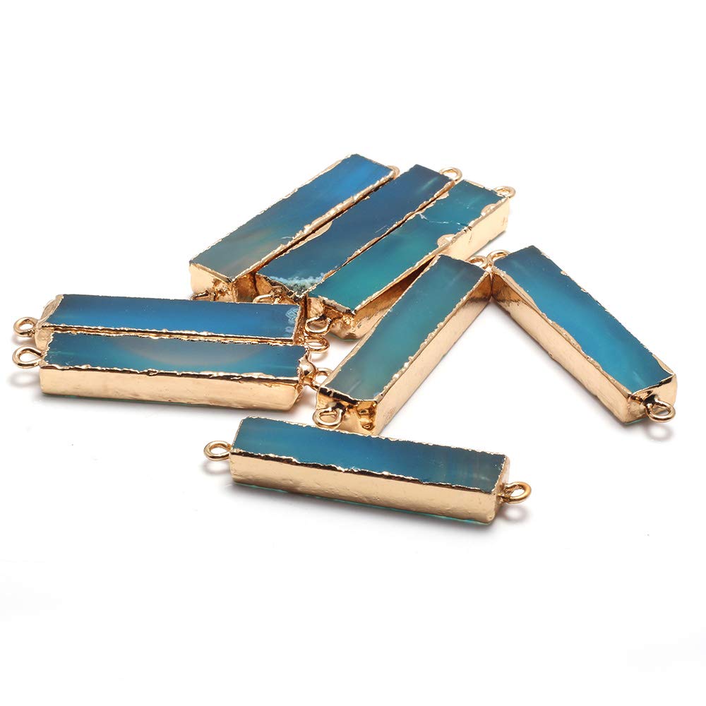 LE SKY Colgantes de piedra natural, barra rectangular, ágata azul, aleación dorada, enlaces para hacer joyas, 5 unidades