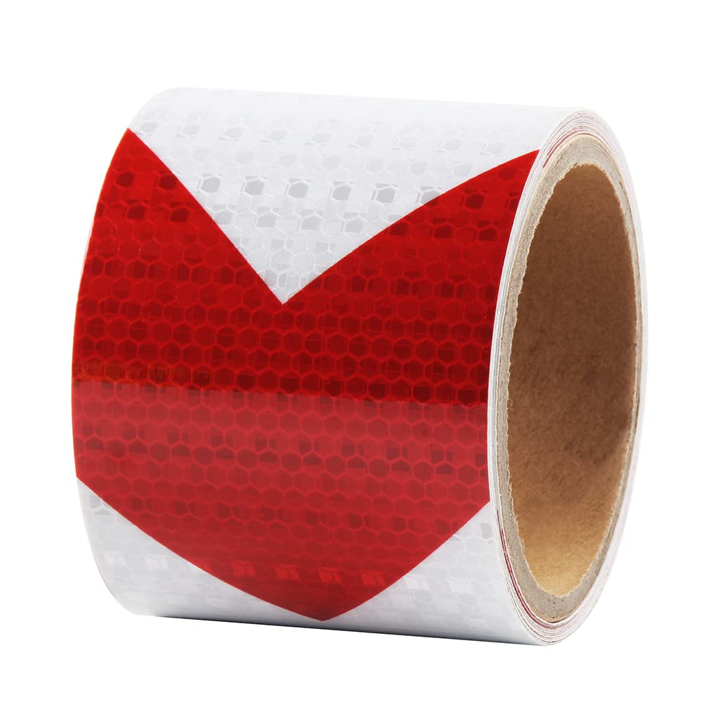 Cinta de seguridad reflectante de flecha roja blanca de 3 pulgadas x 10 pies, cinta autoadhesiva de advertencia de seguridad para