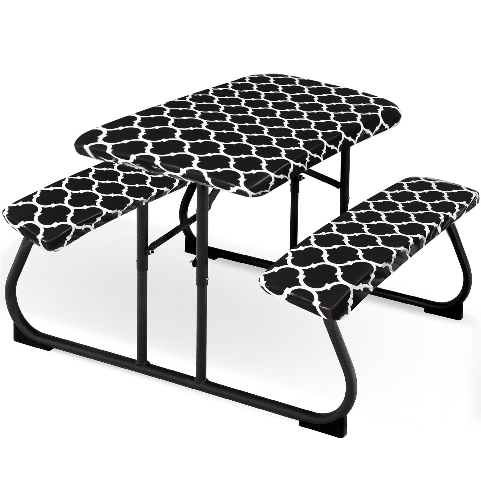 Moukeren Funda de mesa de picnic de 3 piezas para niños con fundas de banco, mantel ajustable para exteriores, vinilo impermeable,