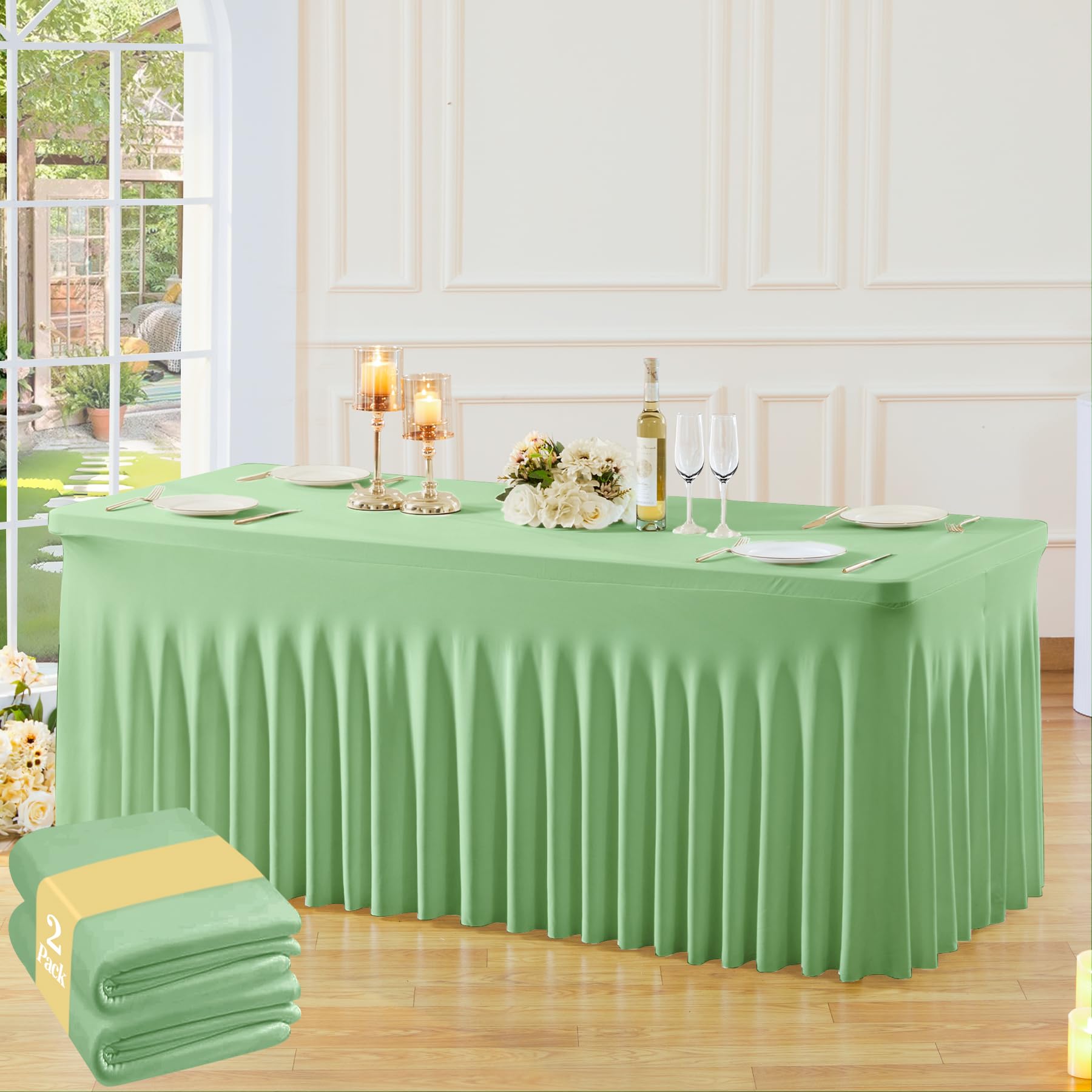 Paquete de 2 manteles color verde salvia para mesas rectangulares de 6 pies, manteles de elastano ajustable de 6 pies, manteles el