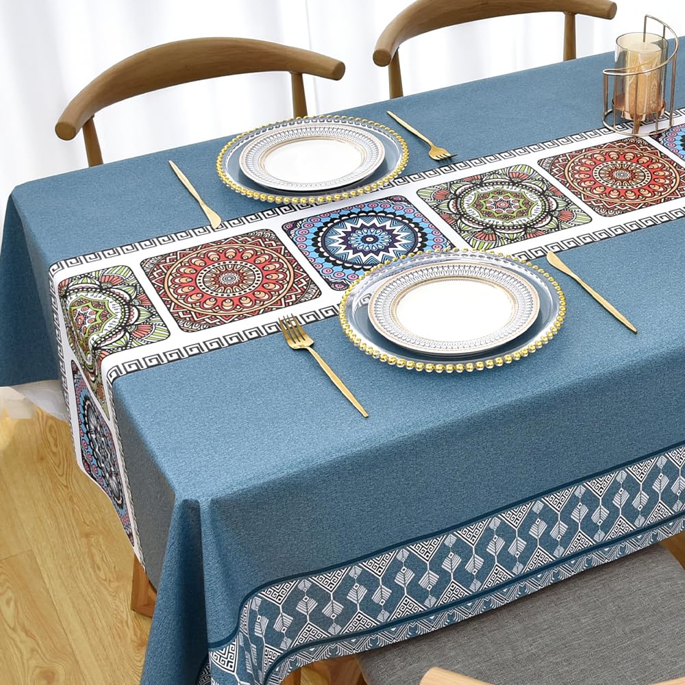 Zobesta Manteles de vinilo azul para mesas rectangulares, mantel impermeable de plástico y PVC, mantel impermeable para mesas rect