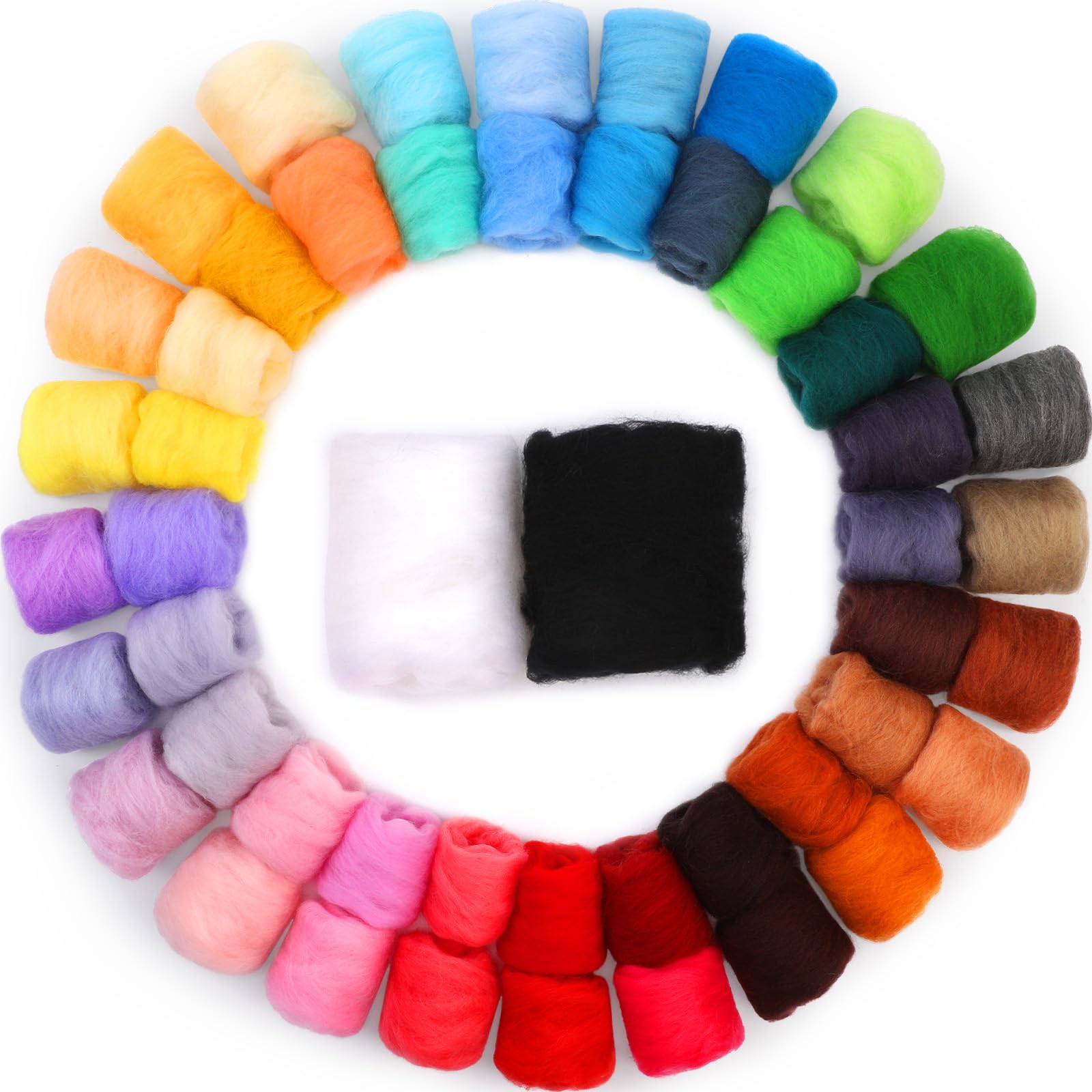 Habbi Lana de fieltro de aguja de 100 colores, lana de fibra para manualidades de bricolaje, fieltro de aguja para hilar, mezcla d