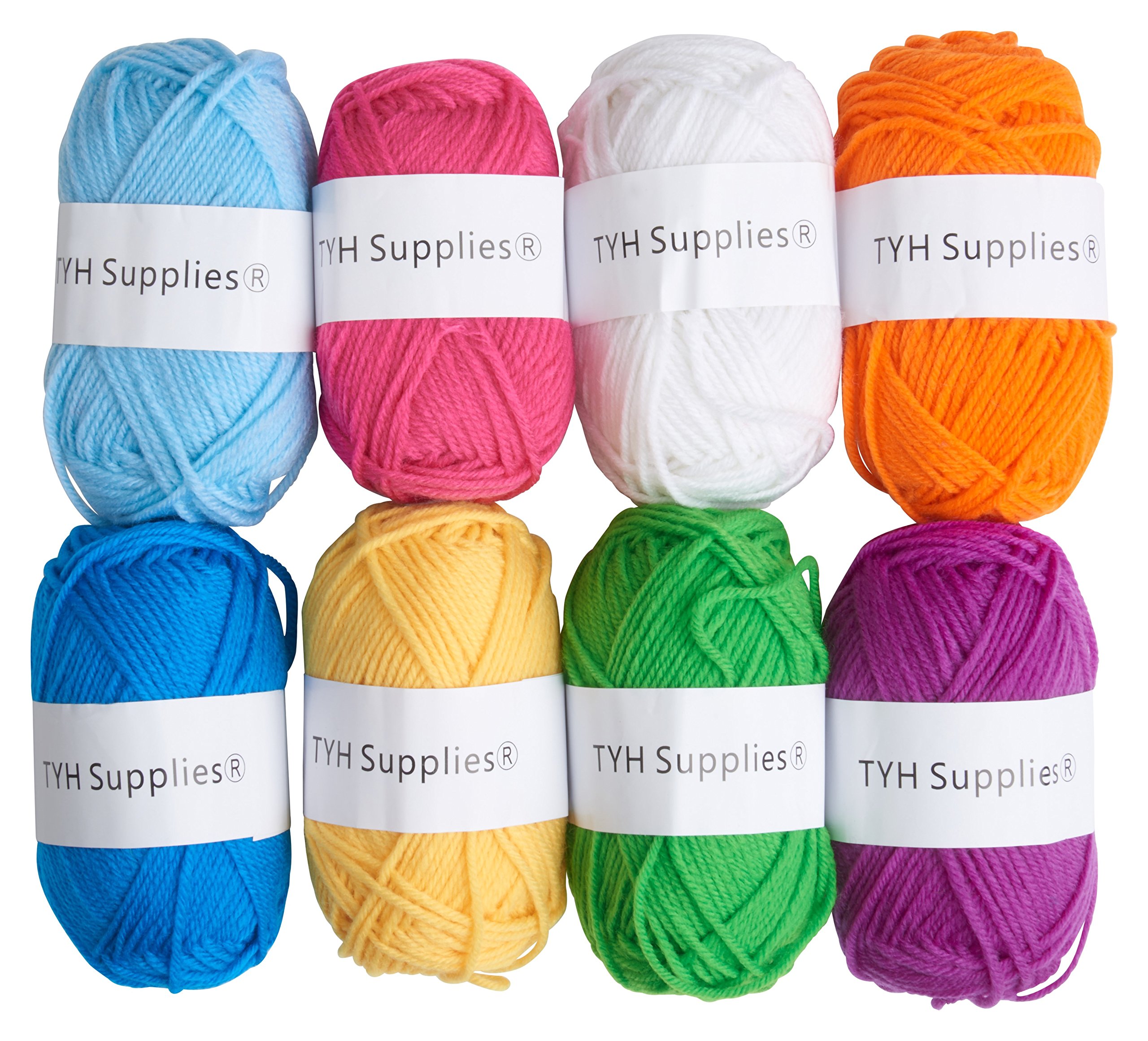 TYH Supplies – Paquete de 8 madejas de hilo acrílico, de 64 m, colores arcoíris surtidos