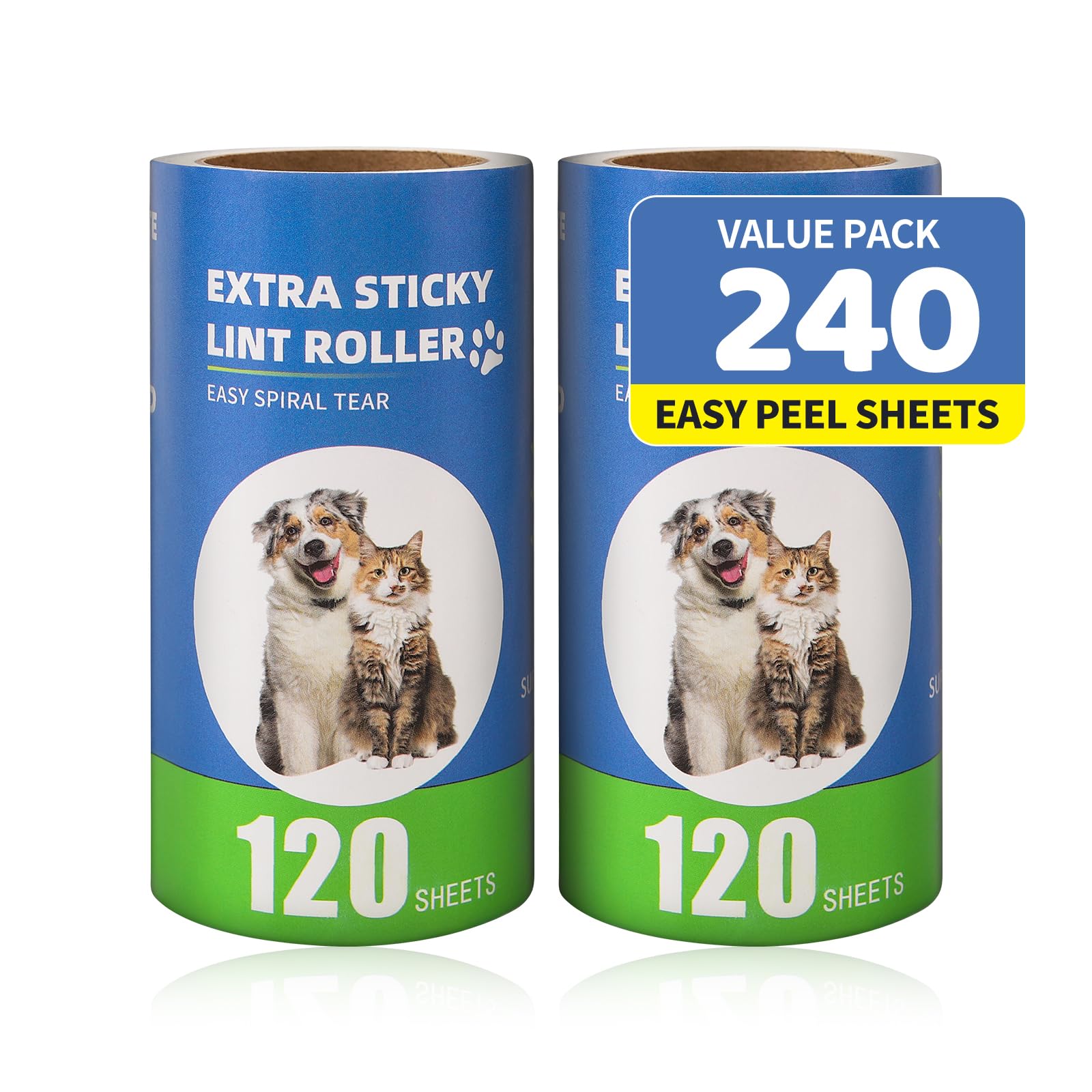 Paquete de 2 repuestos de rodillo de pelusa extra pegajosos (240 hojas) para calcomanías de rodillo de pelusa de tamaño estándar d