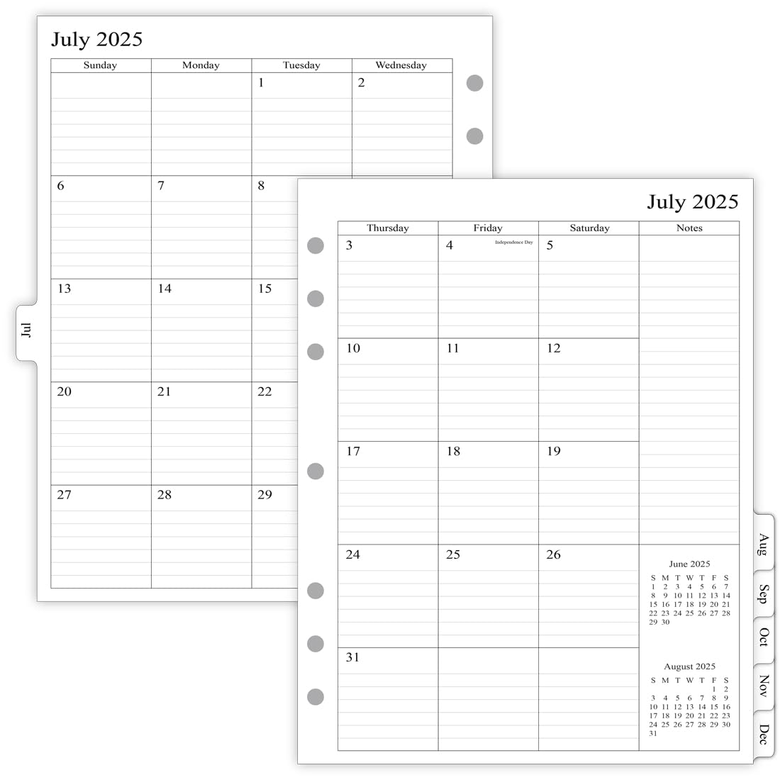 newestor Recambio de planificador mensual 2025-2026 para carpeta de 3 anillos, julio 2025 a diciembre 2026, dos páginas por mes, 8