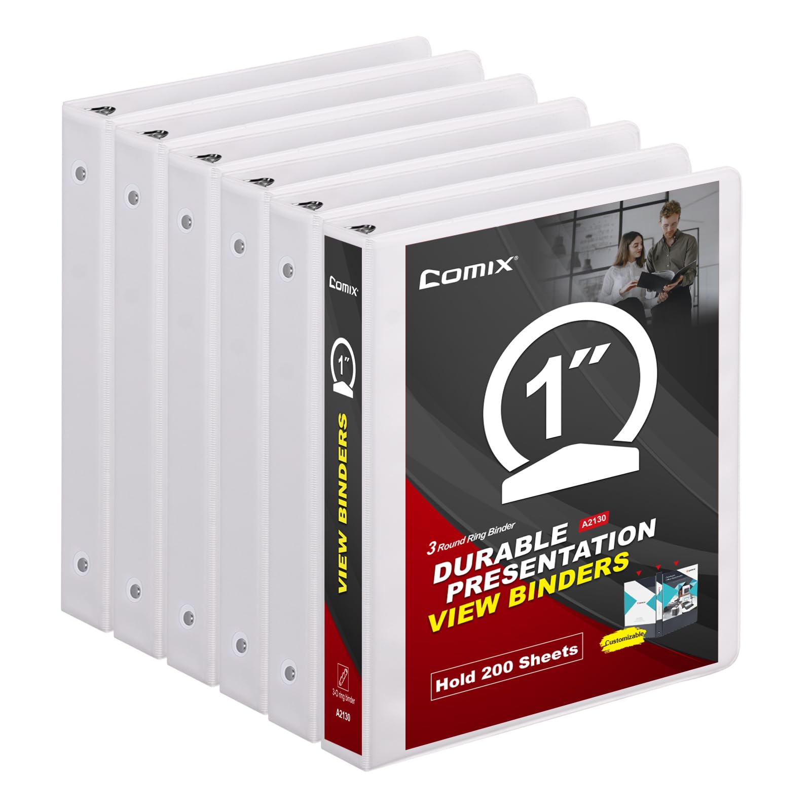 COMIX Carpeta resistente de 3 anillos de 1 pulgada con cubierta transparente, carpeta de anillos redondos de 1 pulgada, sin PVC, c