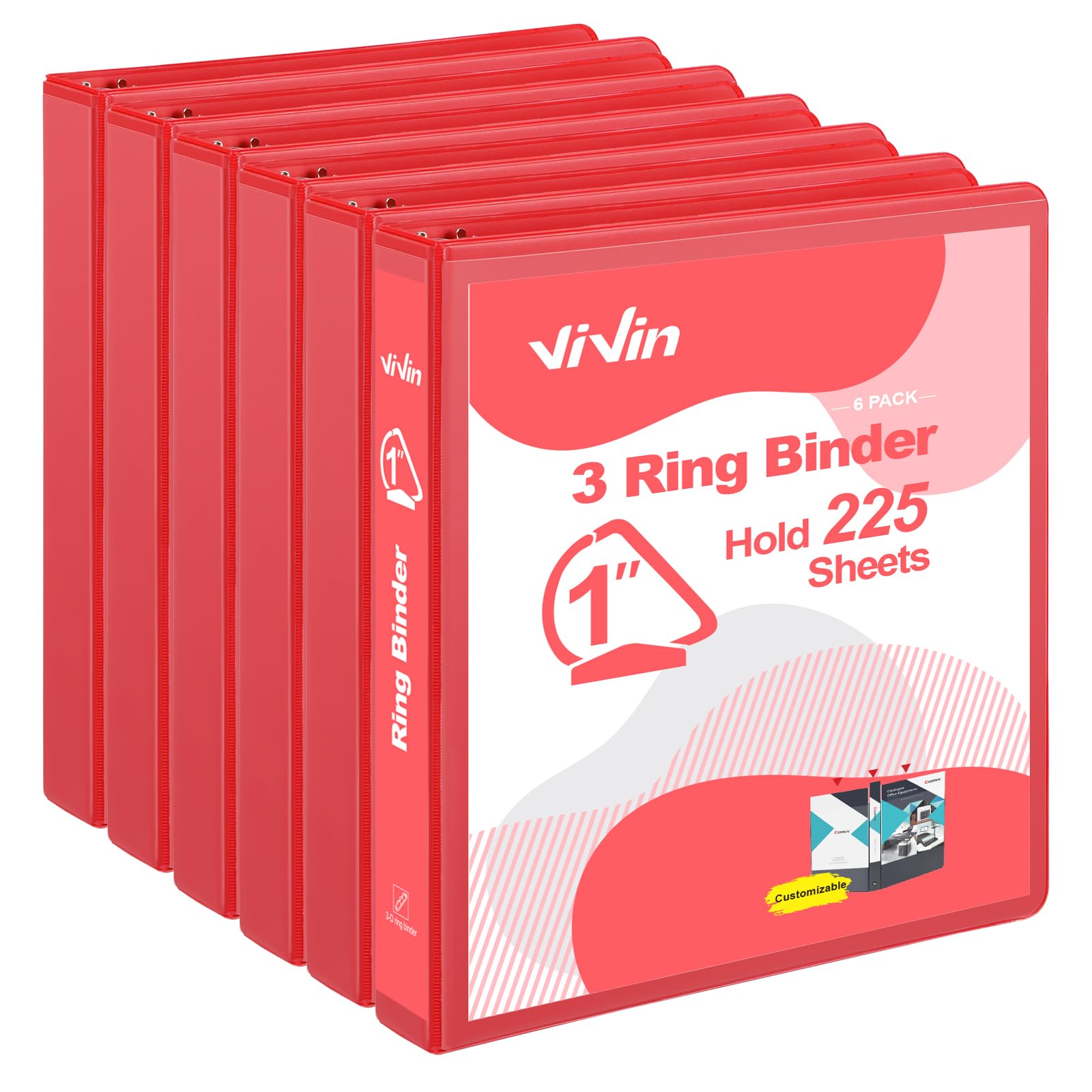 ViVin Carpetas resistentes de anillos en D de 1 pulgada, 3 carpetas de anillos con 2 bolsillos, capacidad para 225 hojas de papel