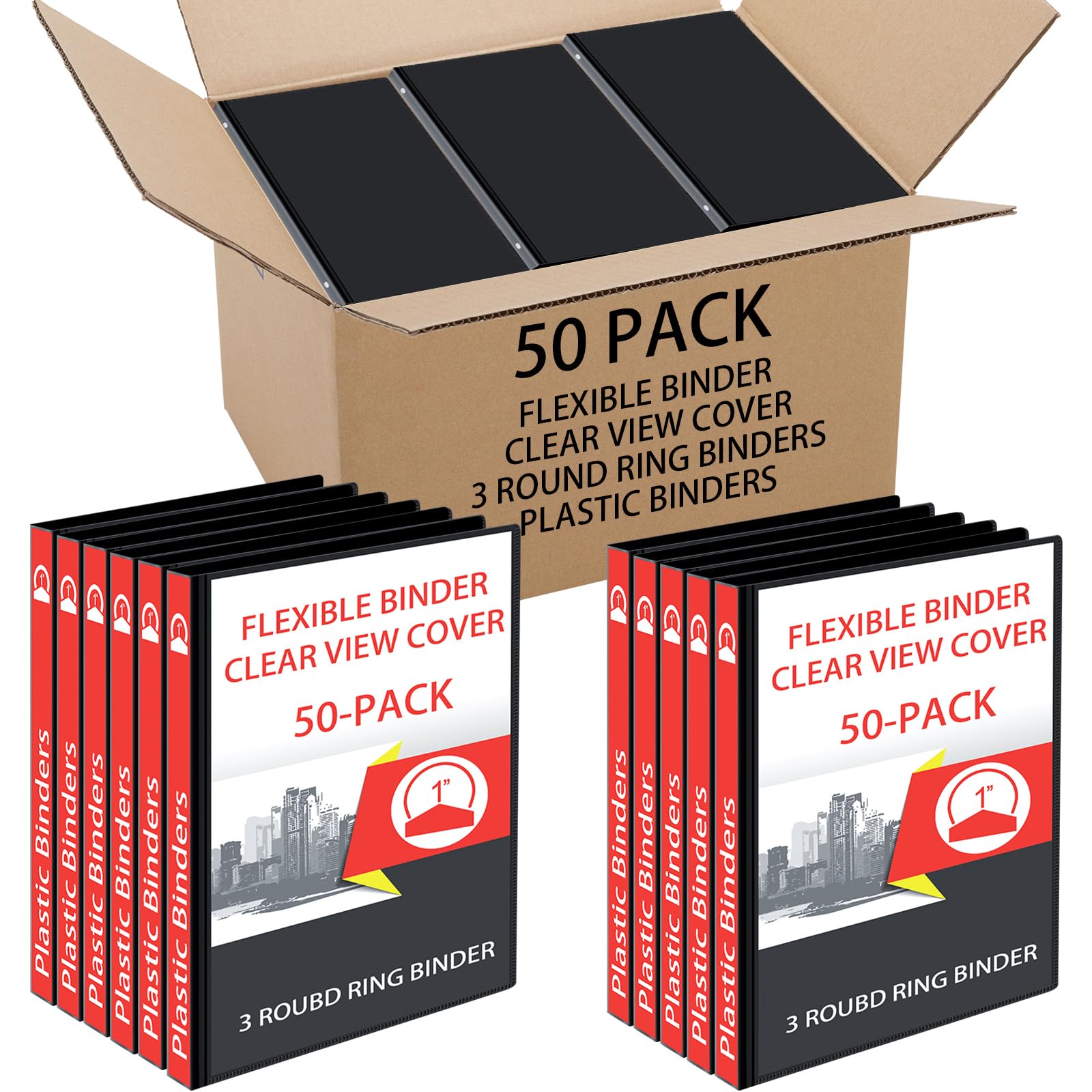 Fulmoon 50 carpetas de 3 anillos de 1 pulgada a granel con 2 bolsillos interiores, redondas, suaves y flexibles, con capacidad par