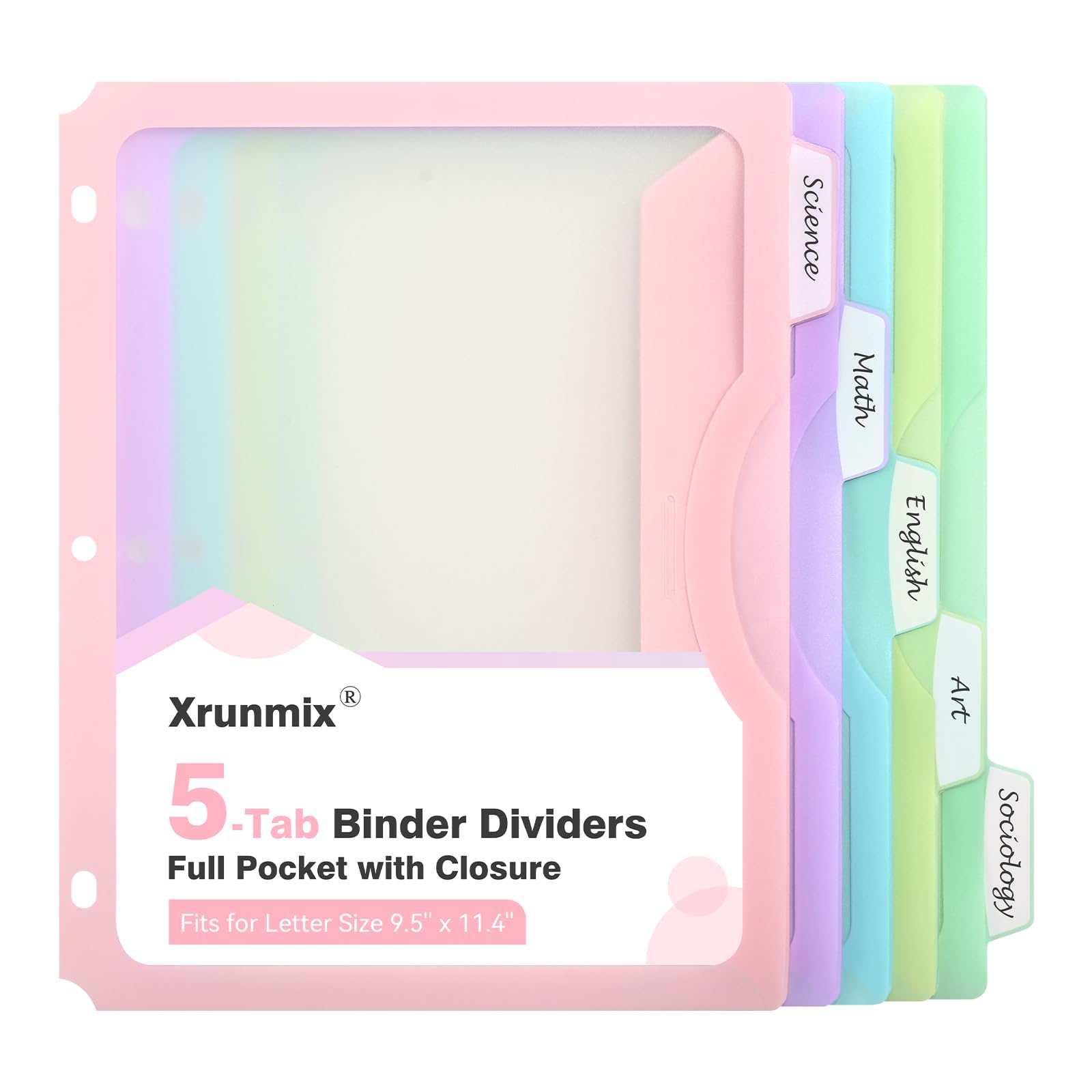 Divisores de 5 pestañas con un bolsillo completo, 5 separadores de carpetas, separadores de 8.5 x 11 pulgadas para carpeta de 3 an