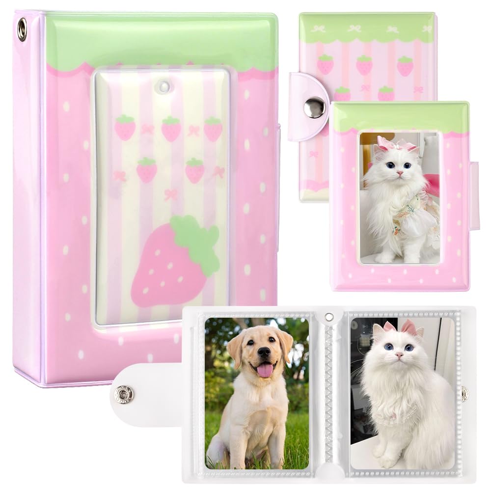 Carpeta para tarjetas fotográficas de fresa rosa, con 40 bolsillos, para álbum de fotos pequeño, fundas transparentes para tarjeta