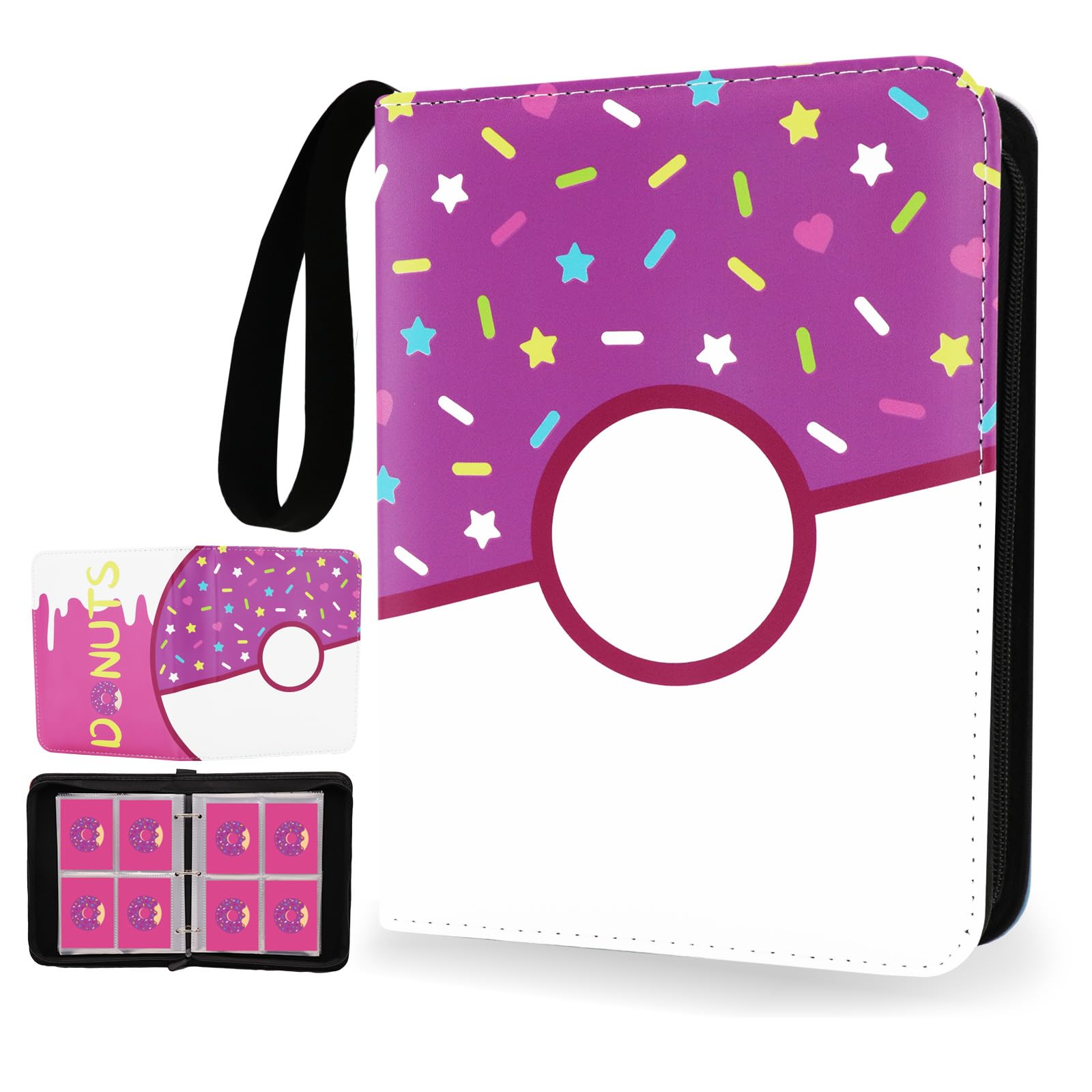 Carpeta para tarjetas de donas, álbum de tarjetas intercambiables, carpeta con cremallera para colección (dona morada, 400 bolsill