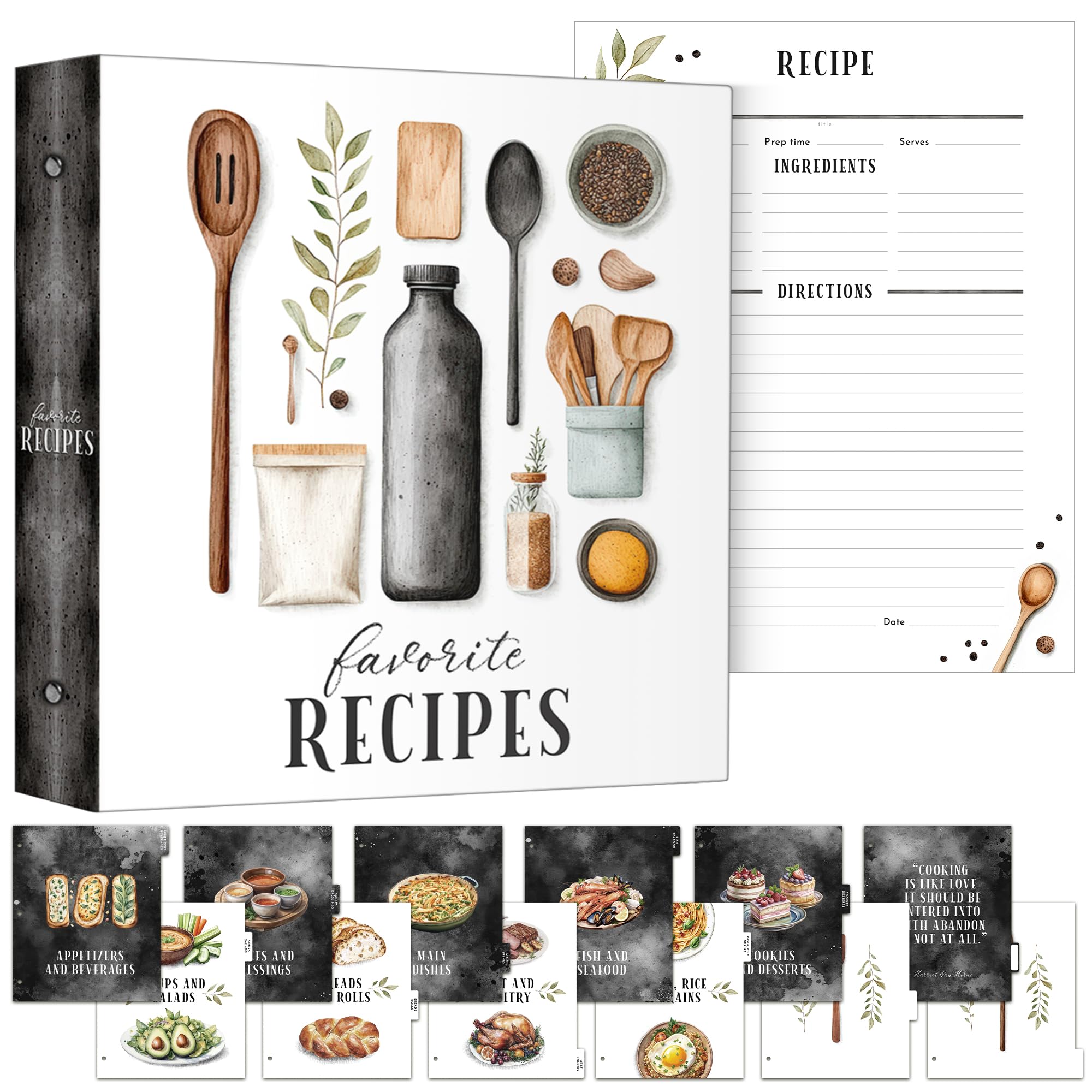 Carpeta de recetas grande con temática de cocina, 11.5 x 12 pulgadas, incluye 25 páginas protectoras de plástico transparente, 25