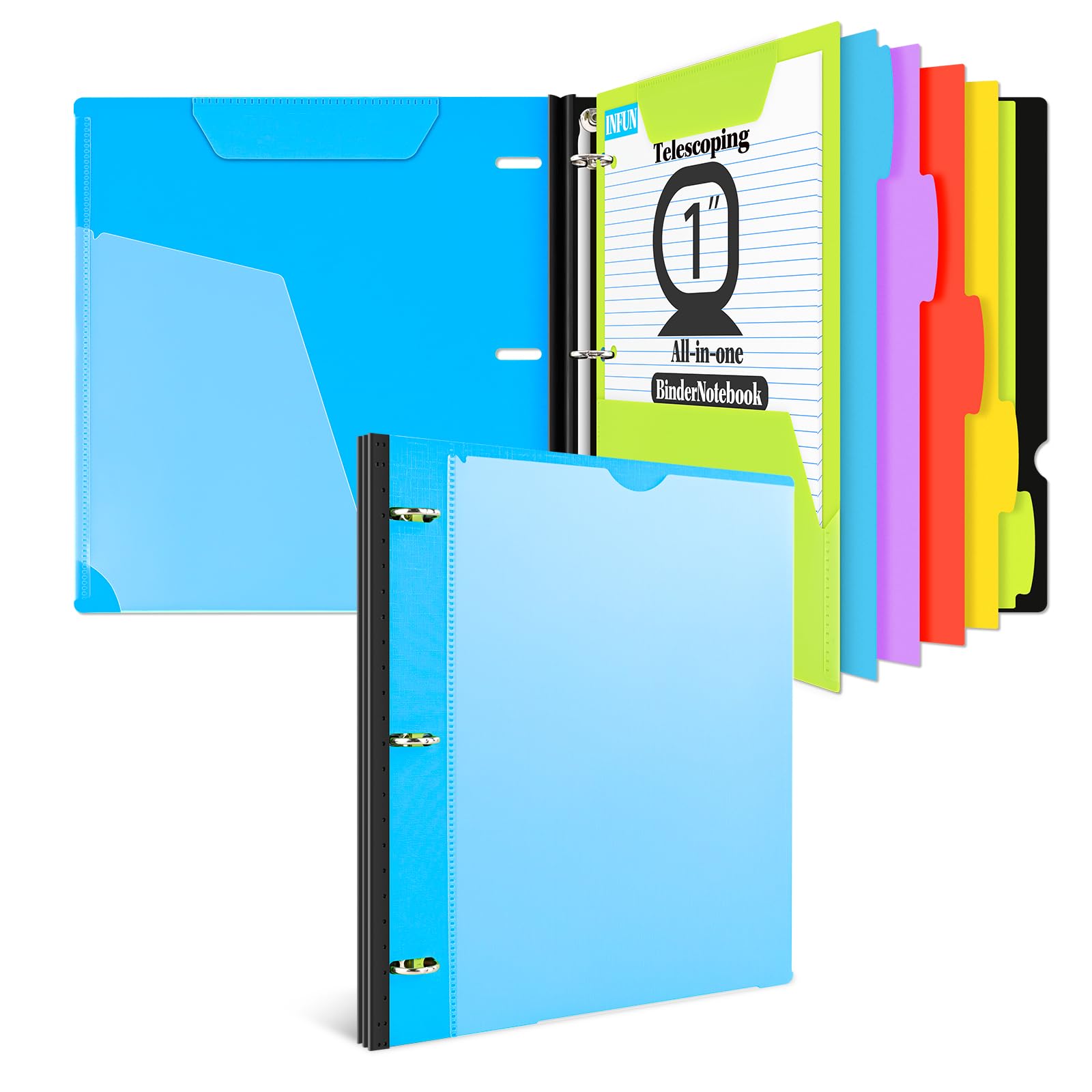 INFUN Cuaderno telescópico todo en uno de 1 pulgada, carpeta de 3 anillos con 1 carpeta de bolsillo móvil de plástico, 5 divisores