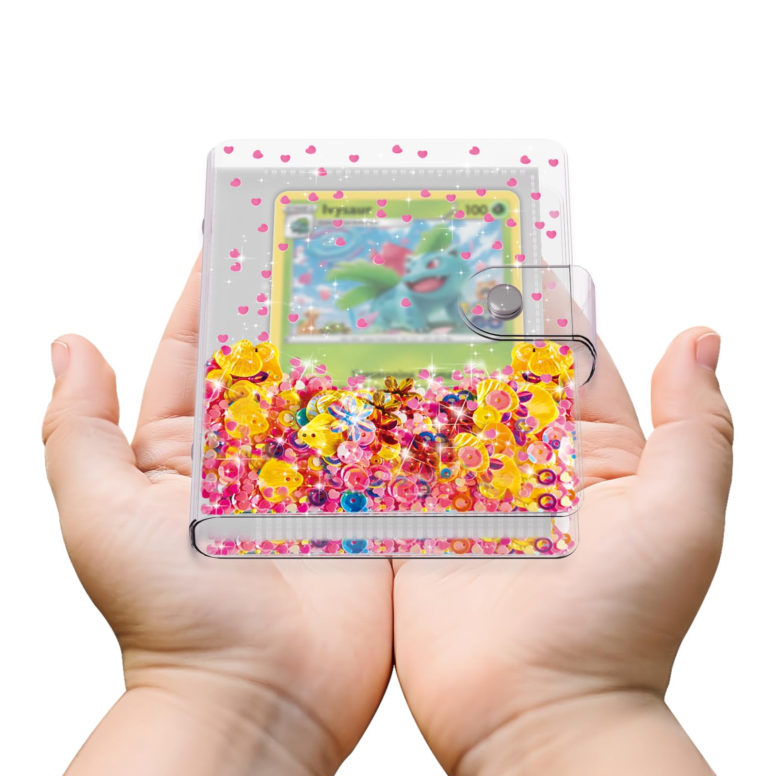 Carpeta de tarjetas rosa para Pokémon, bonita carpeta de tarjetas para tarjetas de juego, folleto de tarjetas pequeñas para regalo