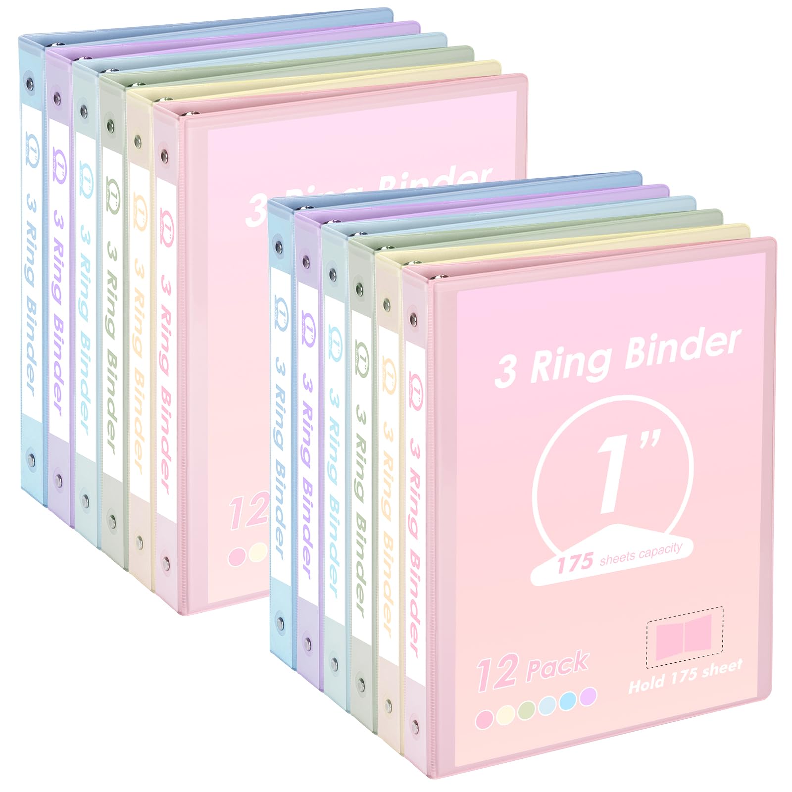 EOOUT Carpeta de 3 anillos de 1 pulgada, paquete de 12 colores pastel surtidos con 2 bolsillos en el interior, se adapta a papel d