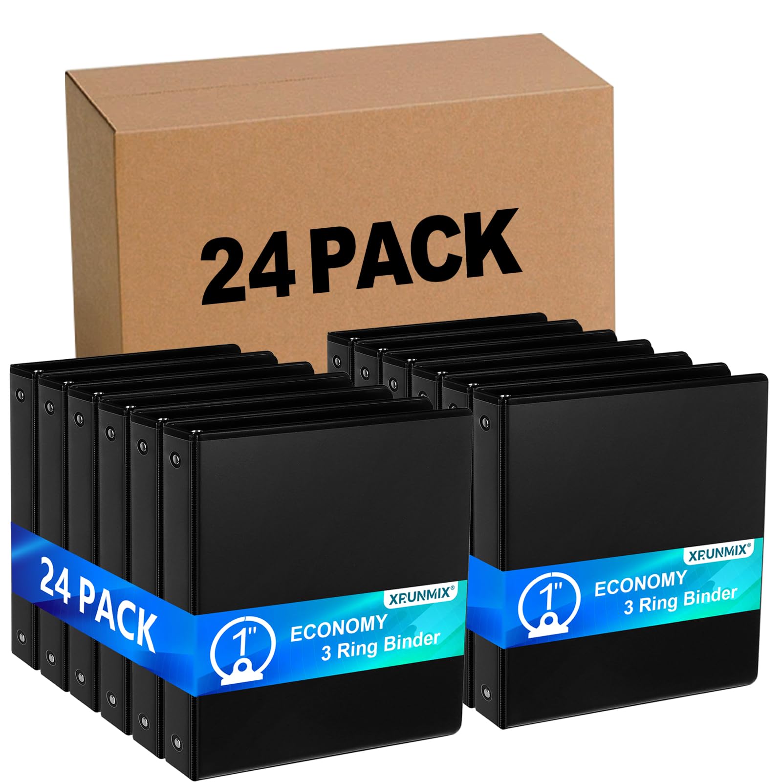 POPRUN Carpeta de 3 anillos de 1 pulgada, organizador duradero sin PVC con 2 bolsillos interiores para la escuela y la oficina, ca